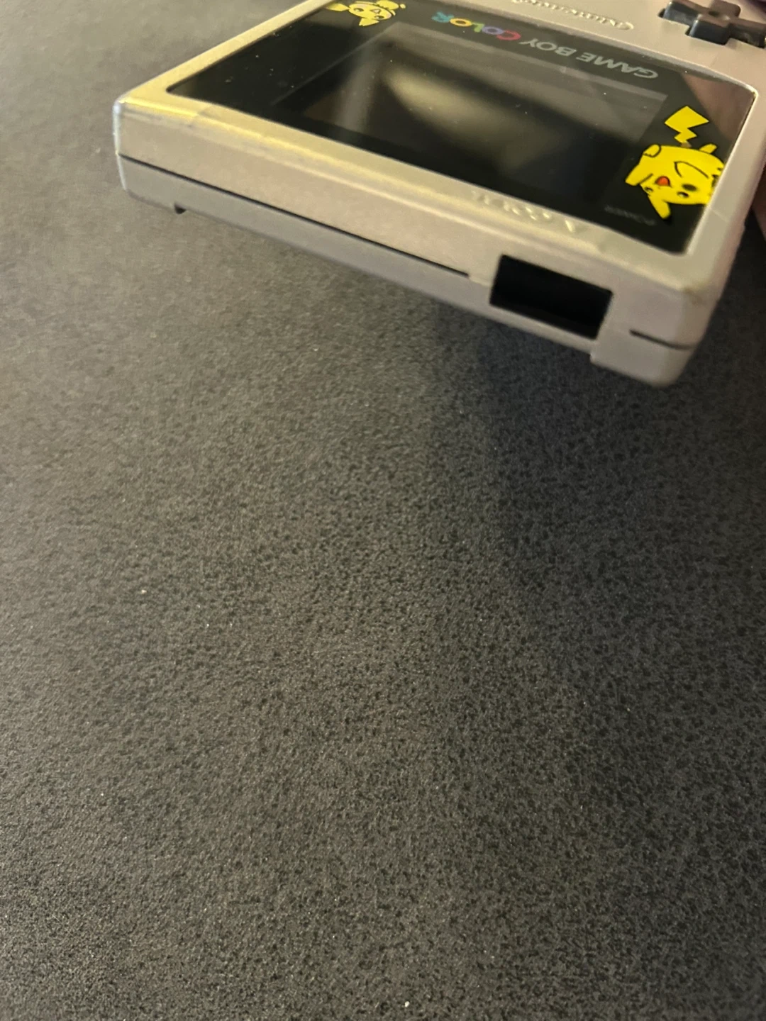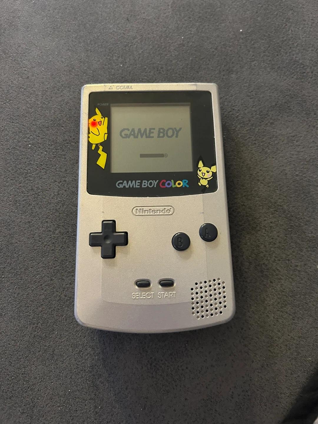 This is a silver Game Boy Color console featuring Pikachu graphics. It's a classic handheld gaming device perfect for retro game enthusiasts. The screen is clear and the buttons are responsive.