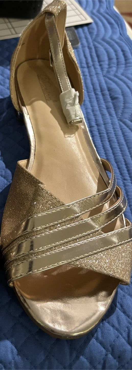 NEW- $5 Dantion Women's Gold Glitter Flats with Pearl Heel