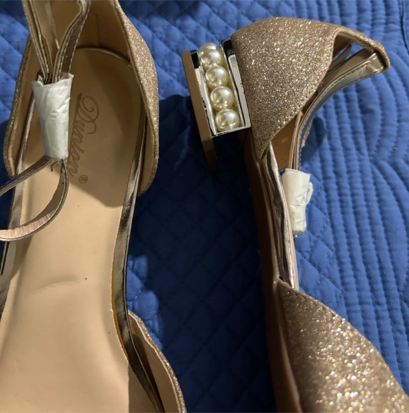 NEW- $5 Dantion Women's Gold Glitter Flats with Pearl Heel