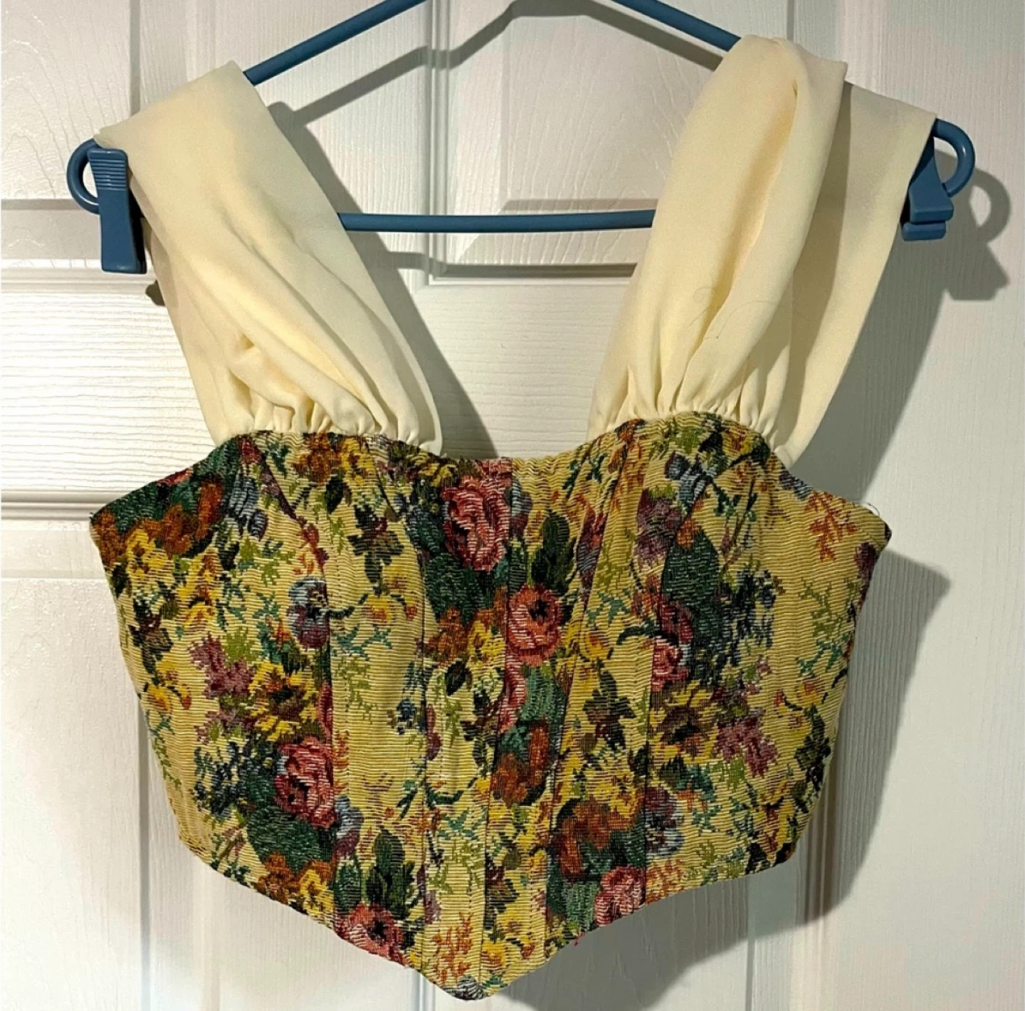 Selling a cute Cider corset top! It features a floral tapestry design and is a size small. It's in great condition and ready for a new home!
