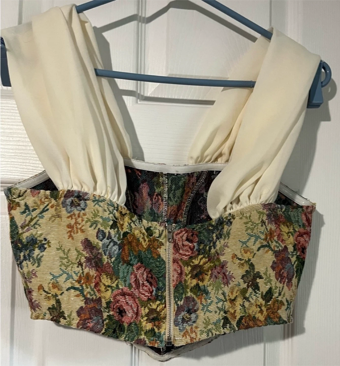 Selling a cute Cider corset top! It features a floral tapestry design and is a size small. It's in great condition and ready for a new home!