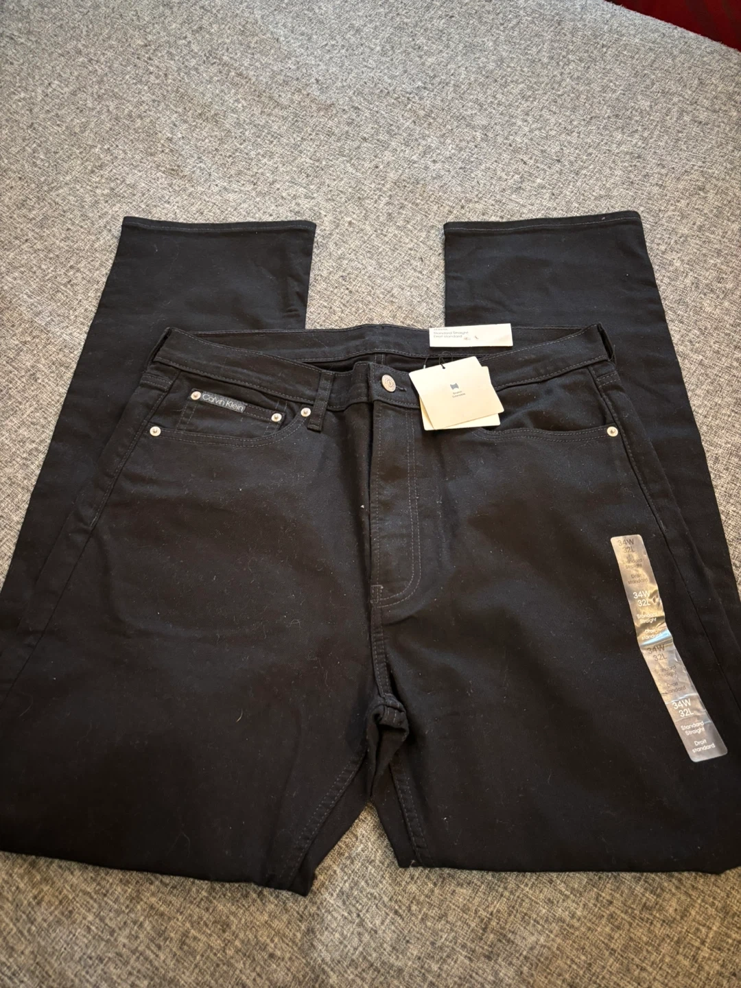 Brand new Calvin Klein jeans. Straight fit, black wash. Size 34 waist, 32 length. Original price $120.00.