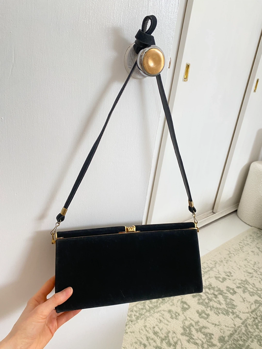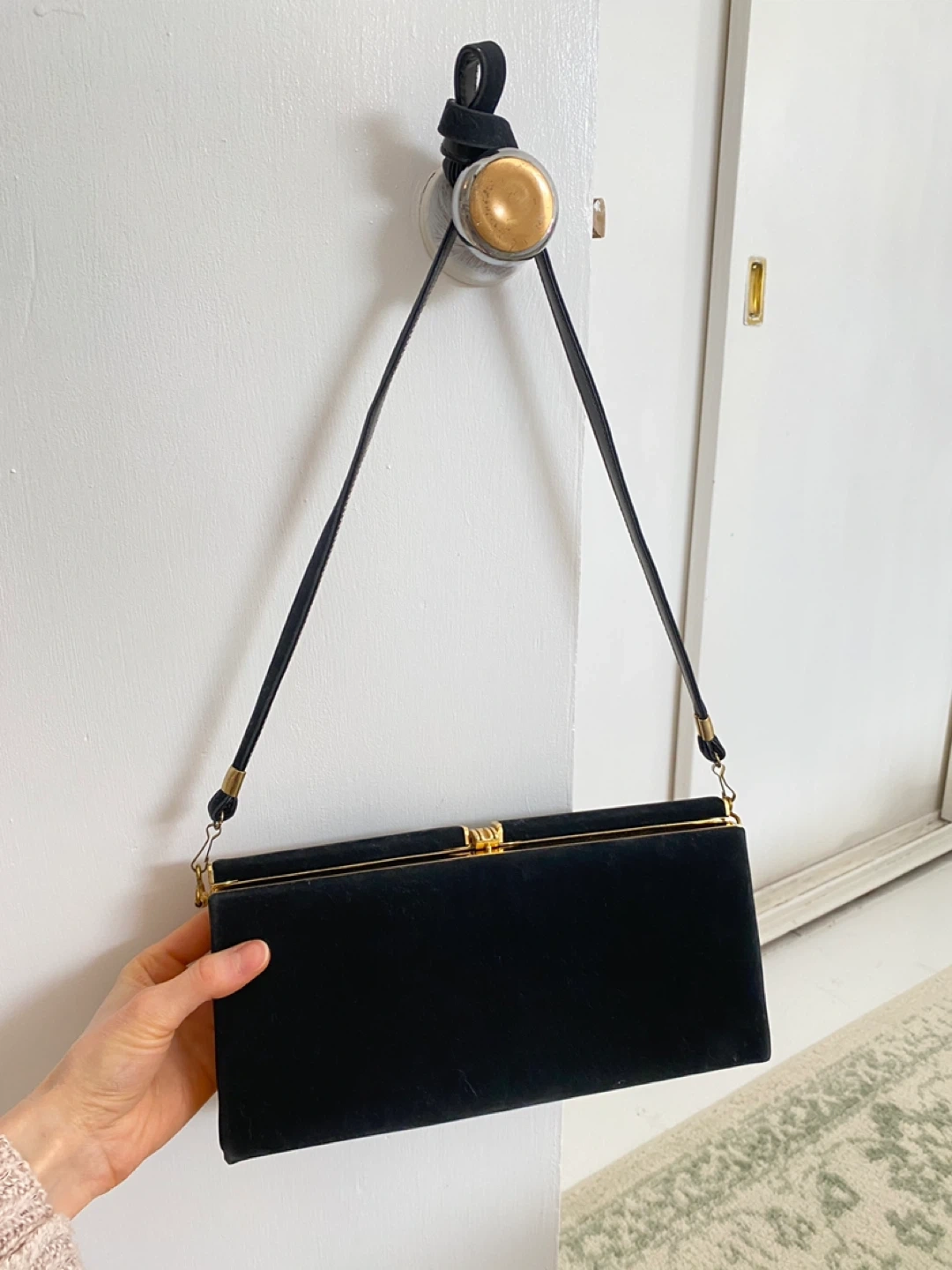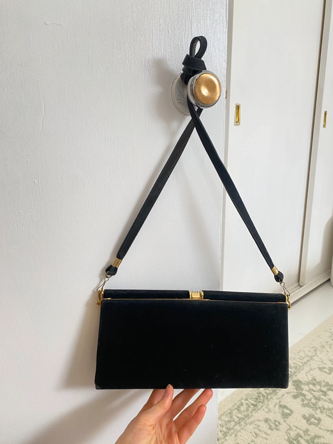 Buy & SellBlack Velvet Clutch Handbag with Gold ClaspBlack Velvet Clutch Handbag with Gold Clasp$25New condition Vintage black velvet clutch handbag with gold hardware clasp closure. Very elegant and good qualityConditionLike newWHERE TO MEETCheck LocationView MapSELLERverifiedKassandraRosscarrock872 reviews0 chats·0 favorites·7 viewsSEND CHAT TO SELLERHi Kassandra! I’m interested in your listing.Hi Kassandra! I’m interested in your listing.Get the Karrot app to chatSign In to chat