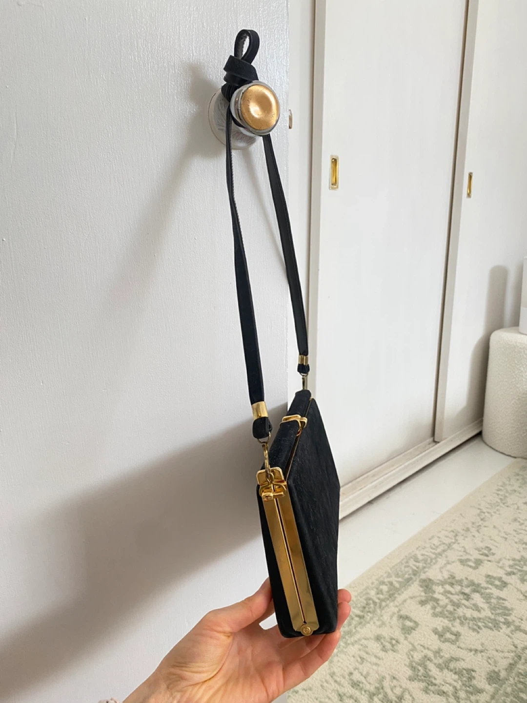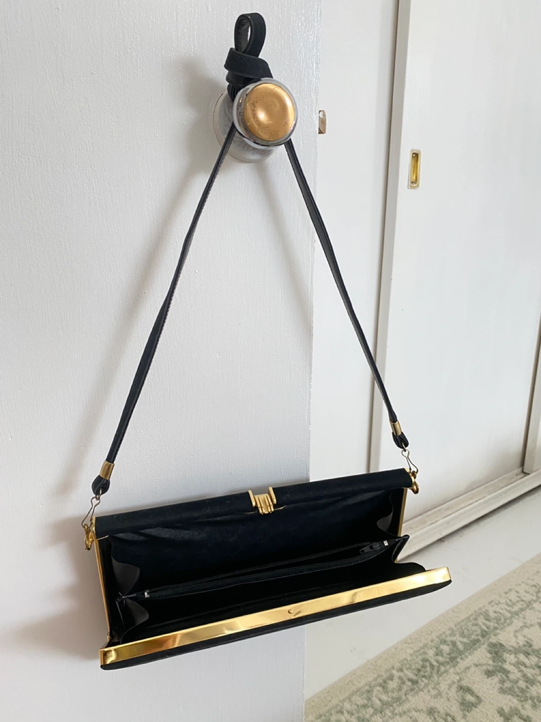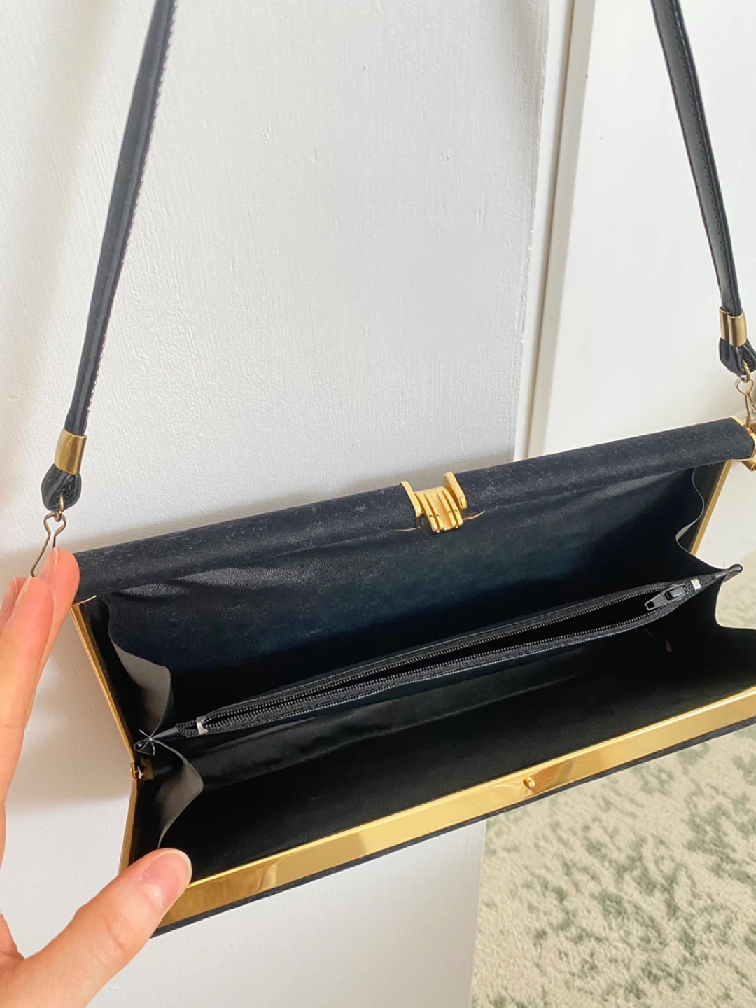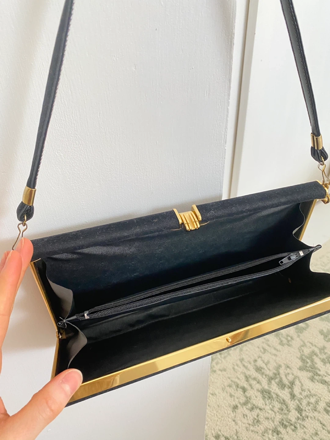 Buy & SellBlack Velvet Clutch Handbag with Gold ClaspBlack Velvet Clutch Handbag with Gold Clasp$25New condition Vintage black velvet clutch handbag with gold hardware clasp closure. Very elegant and good qualityConditionLike newWHERE TO MEETCheck LocationView MapSELLERverifiedKassandraRosscarrock872 reviews0 chats·0 favorites·7 viewsSEND CHAT TO SELLERHi Kassandra! I’m interested in your listing.Hi Kassandra! I’m interested in your listing.Get the Karrot app to chatSign In to chat