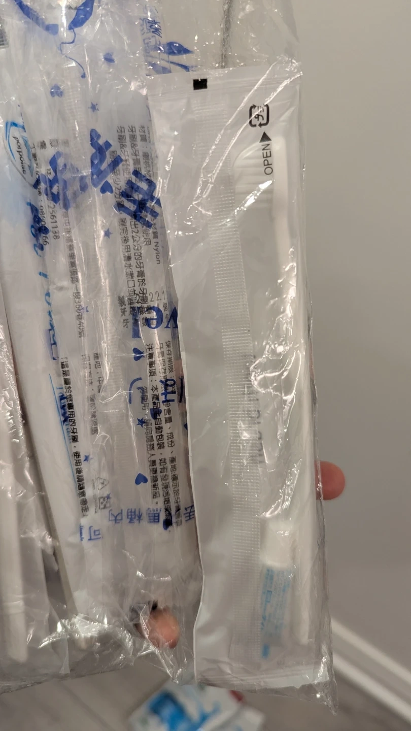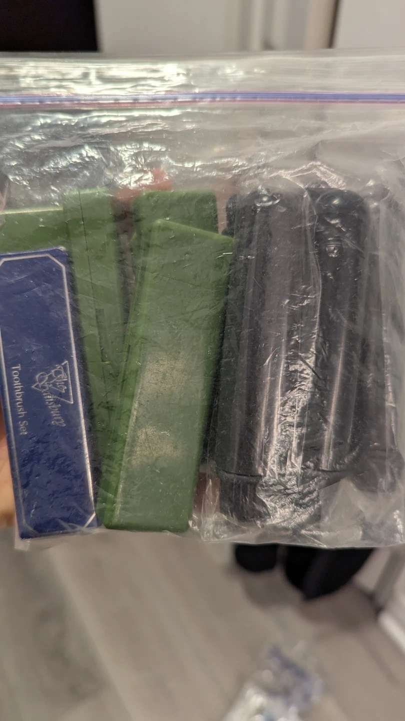 - Many travel sized toothbrushes/toothpaste sets