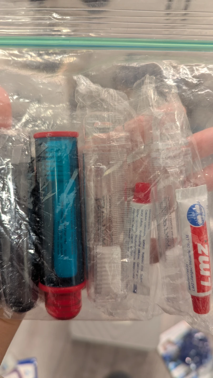 - Many travel sized toothbrushes/toothpaste sets