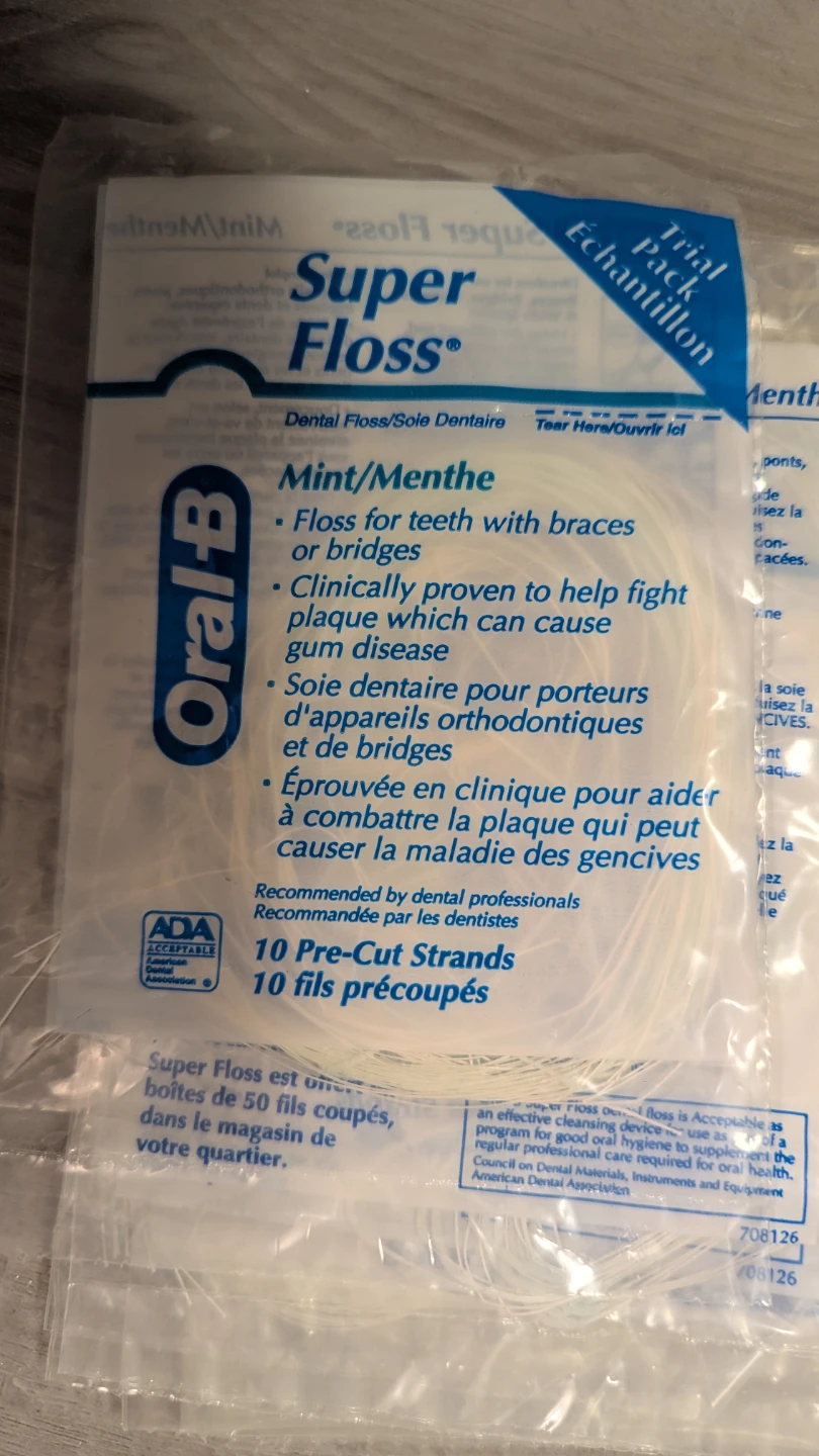 - Oral B mint super floss packs (each w 10 pieces)