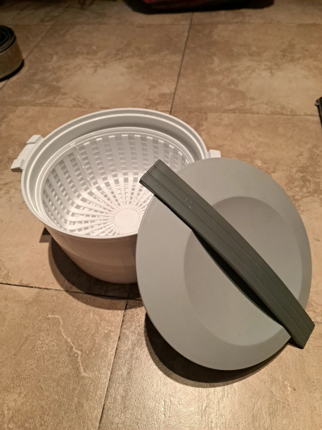 White Salad Spinner with Grey Lid