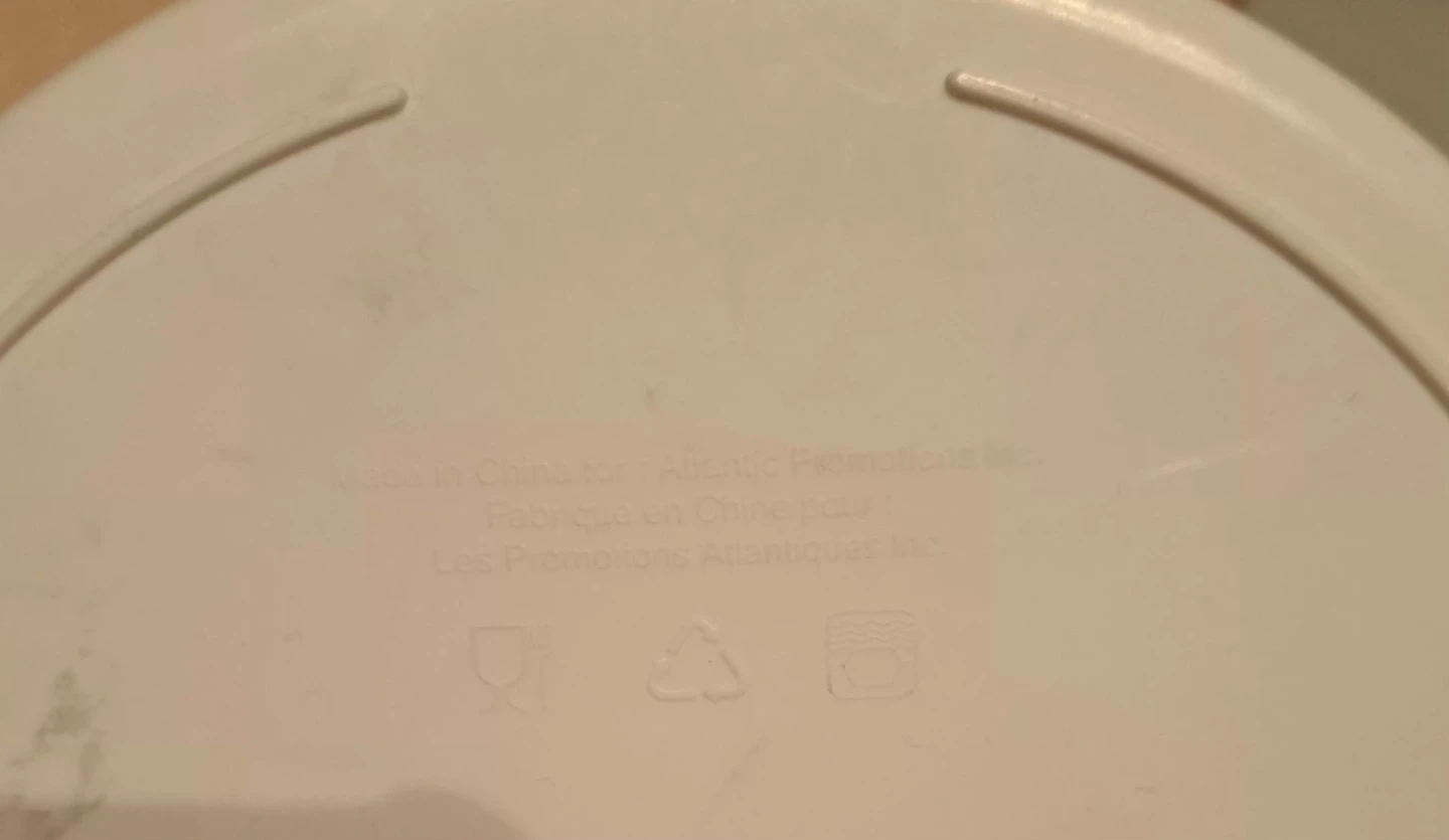 This white salad spinner has a grey lid and a separate inner basket. It's made of plastic. Dishwasher safe on top rack. Size is 10".