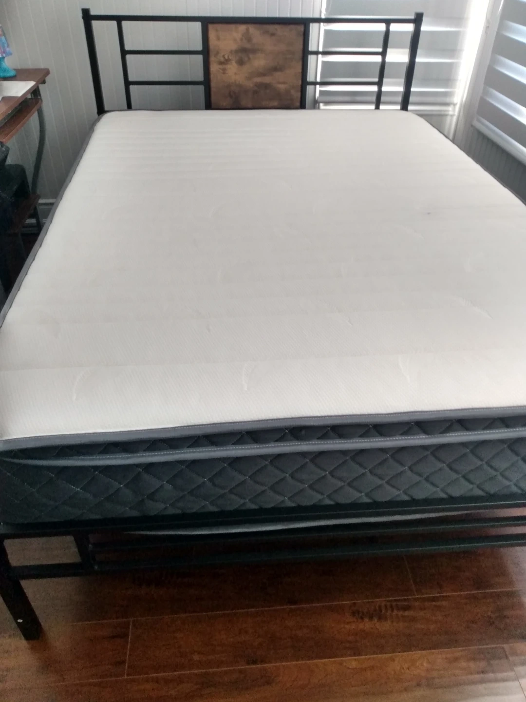 Black Metal Bed Frame with Wood Accent