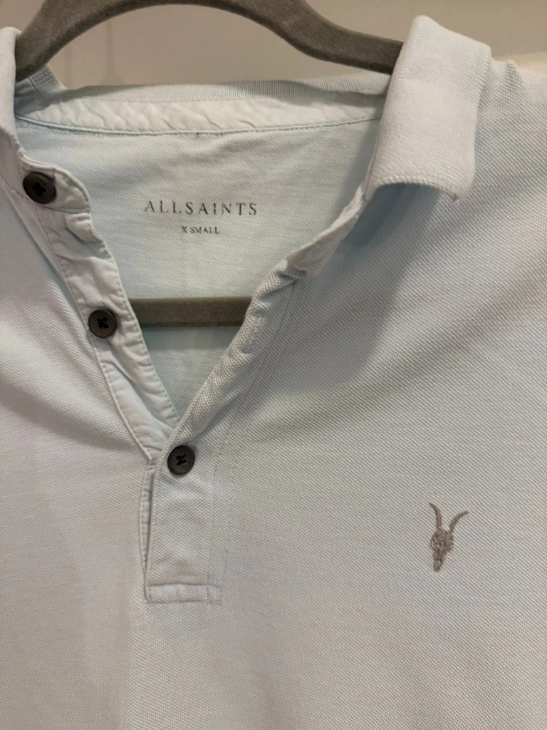 I'm selling an AllSaints polo shirt in size XS. It's a light blue colour and in great condition. Perfect for casual wear!