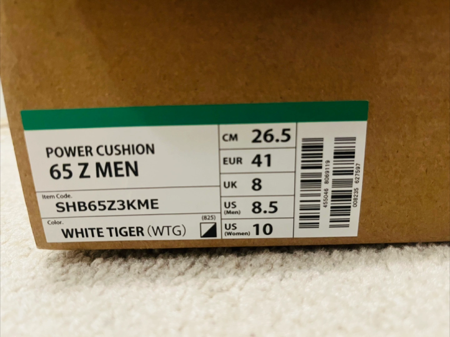 Yonex Power Cushion 65 Z badminton shoes. Men's size 8.5 US, White Tiger colourway. Excellent cushioning and support. Great for badminton or other court sports.