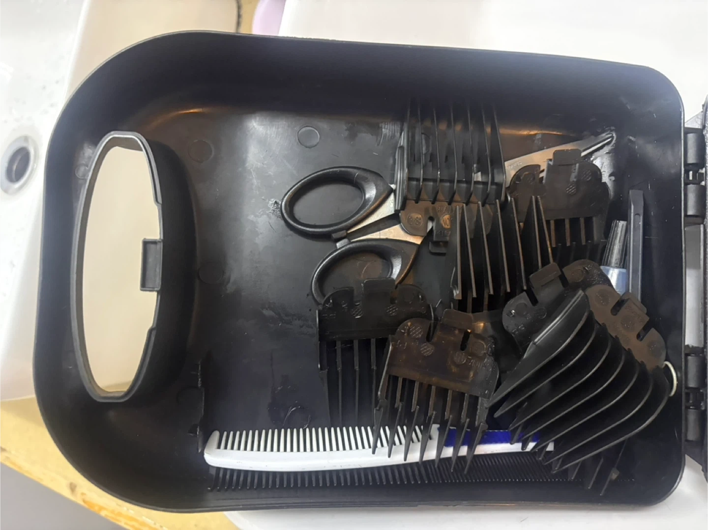 Selling a Wahl hair clipper set, complete with a variety of attachments, scissors, and combs. It all comes neatly organized in a handy carrying case, making it easy to store and transport. Great for at-home haircuts!