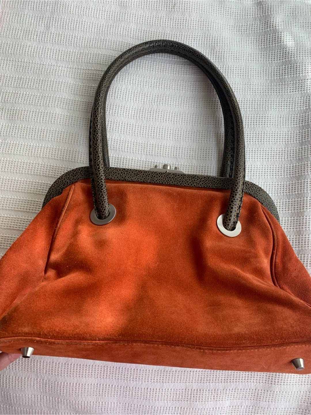 Orange Suede Leather Handbag