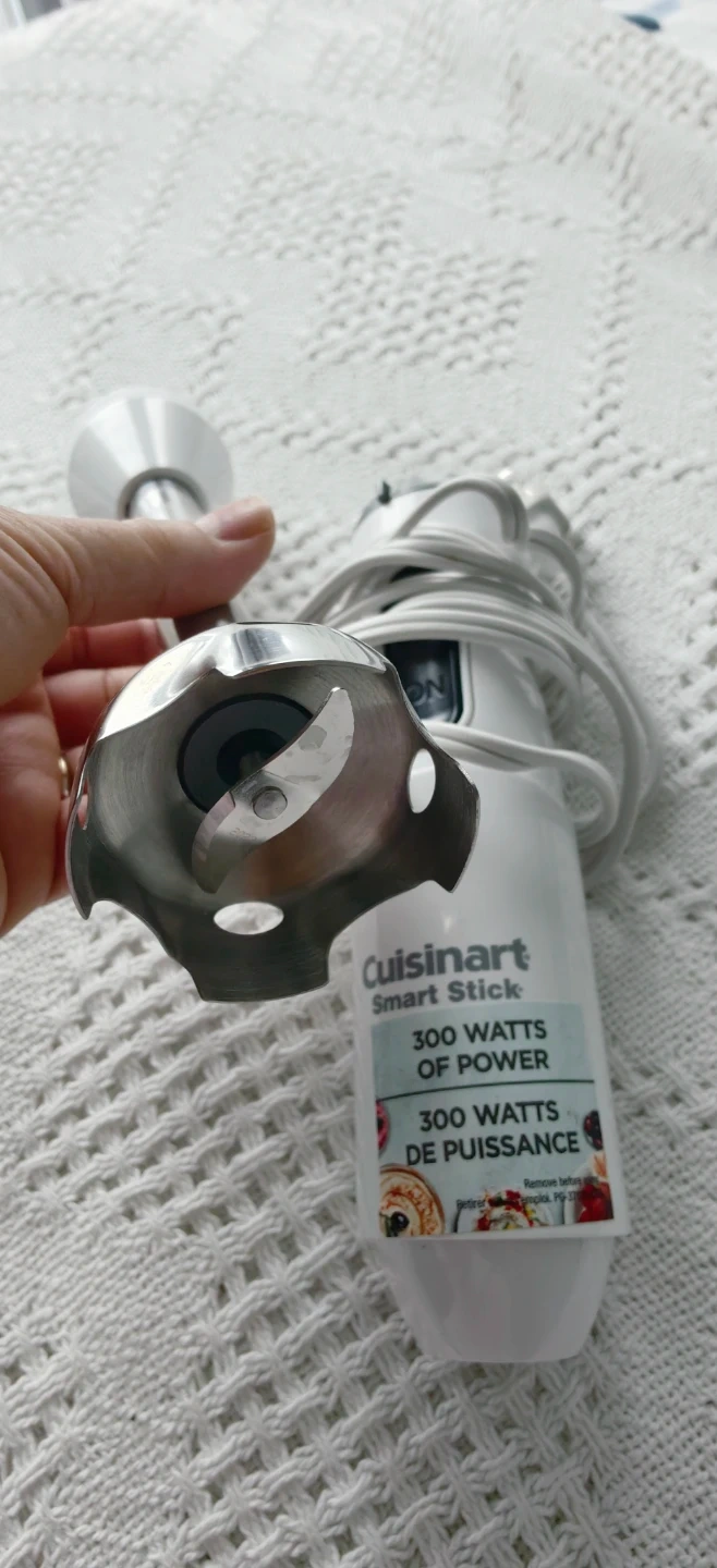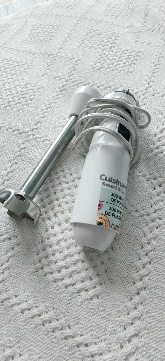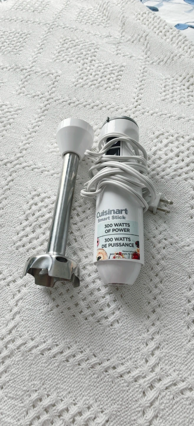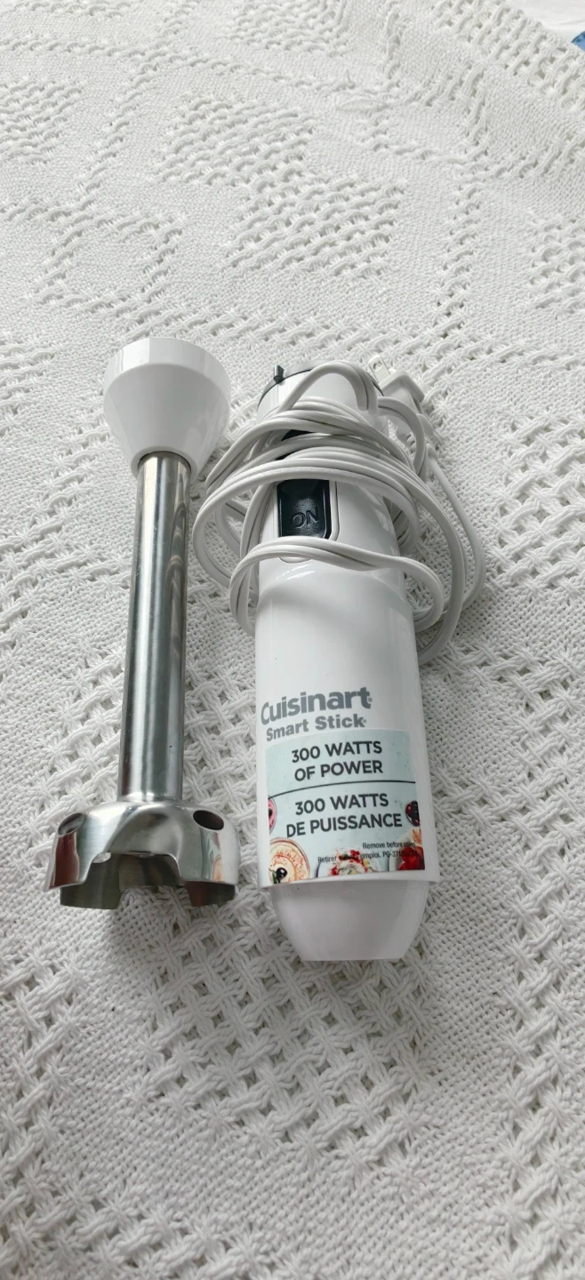 Cuisinart Smart Stick immersion blender with 300 watts of power. Features a stainless steel blending shaft. It's great for quick blending tasks.