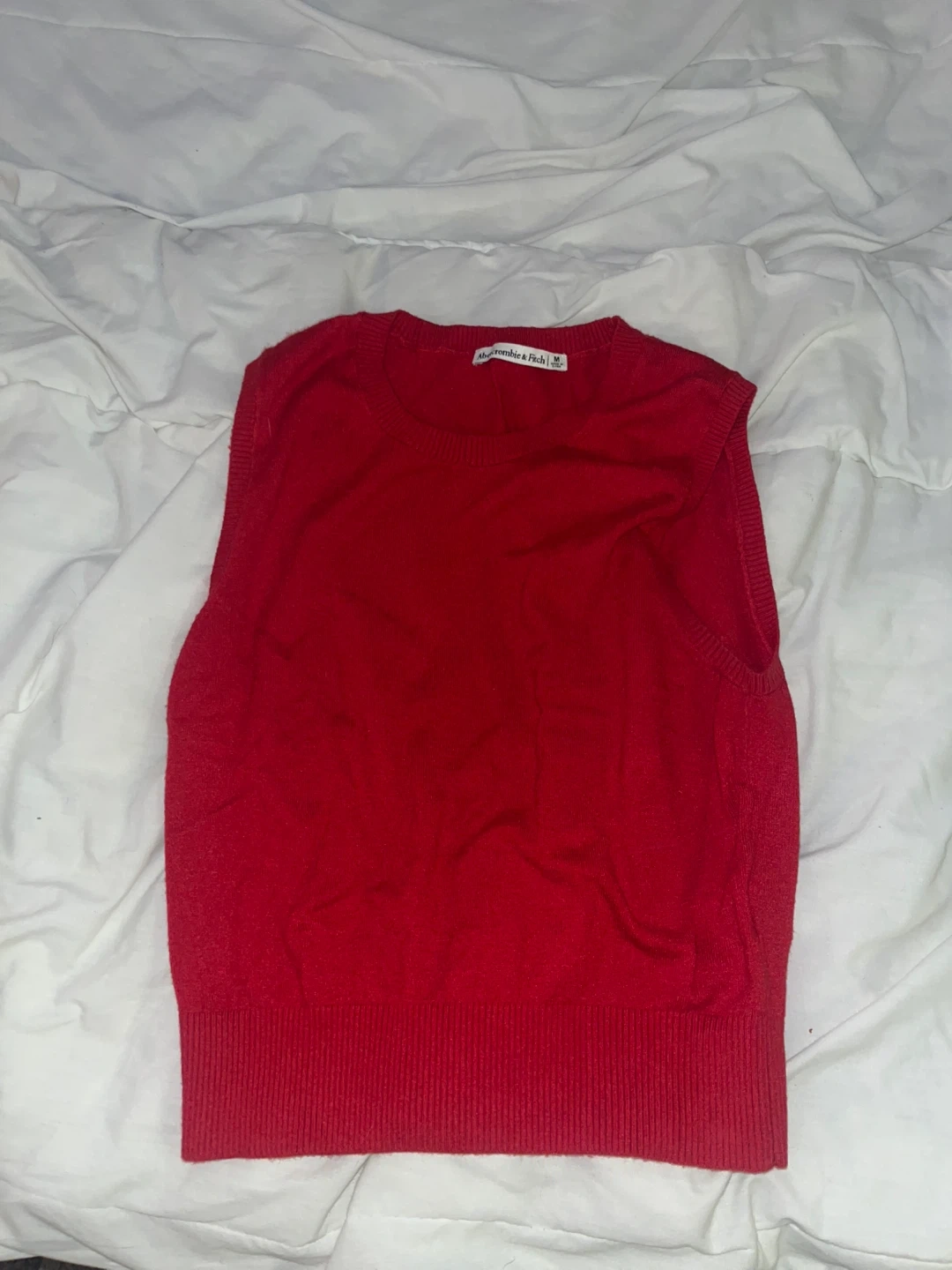 Abercrombie & Fitch sweater vest in a bright red colour. It's a size medium. Made in China. Perfect for layering over shirts or dresses!