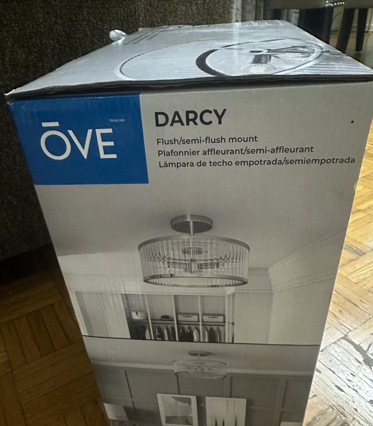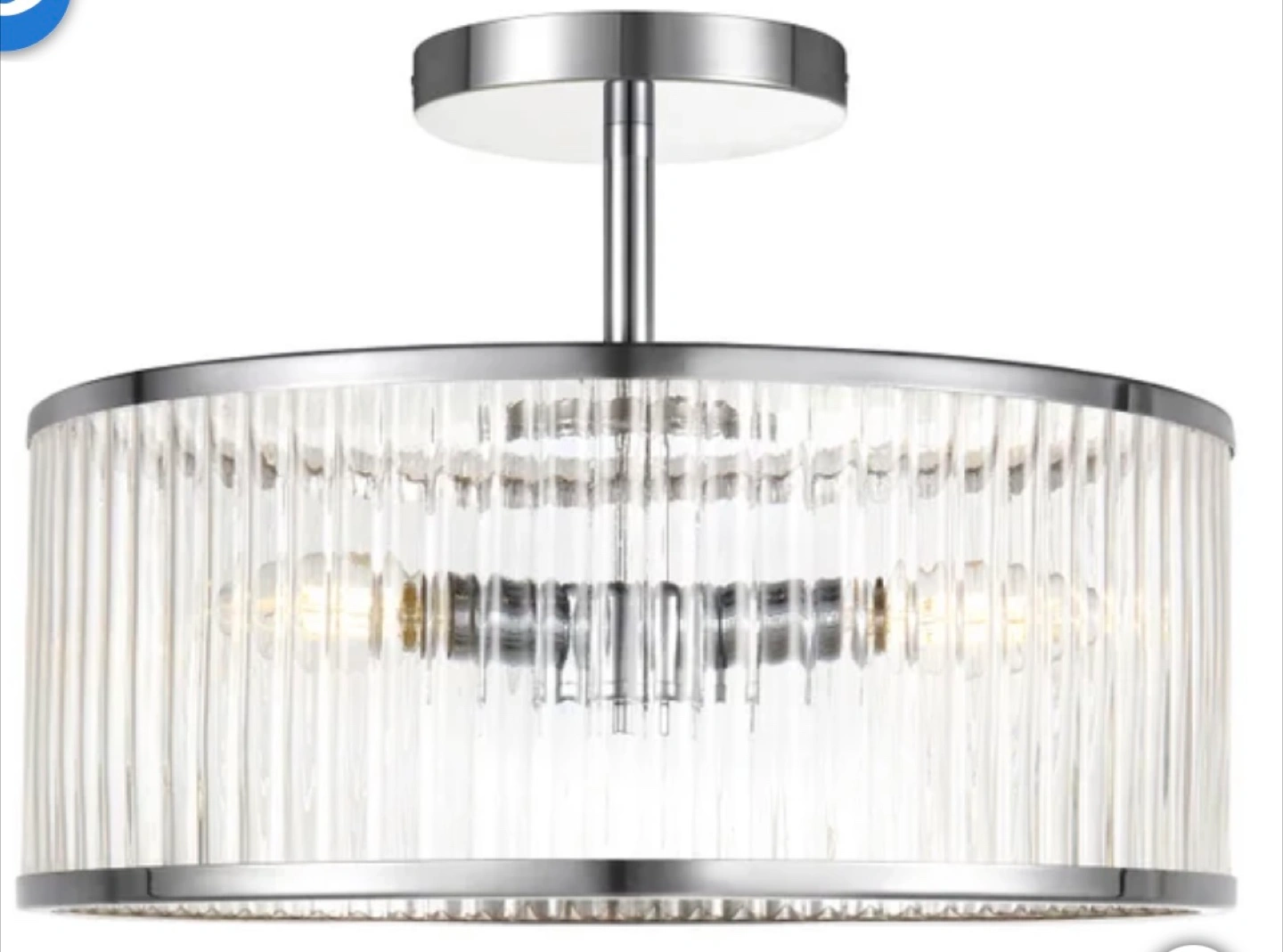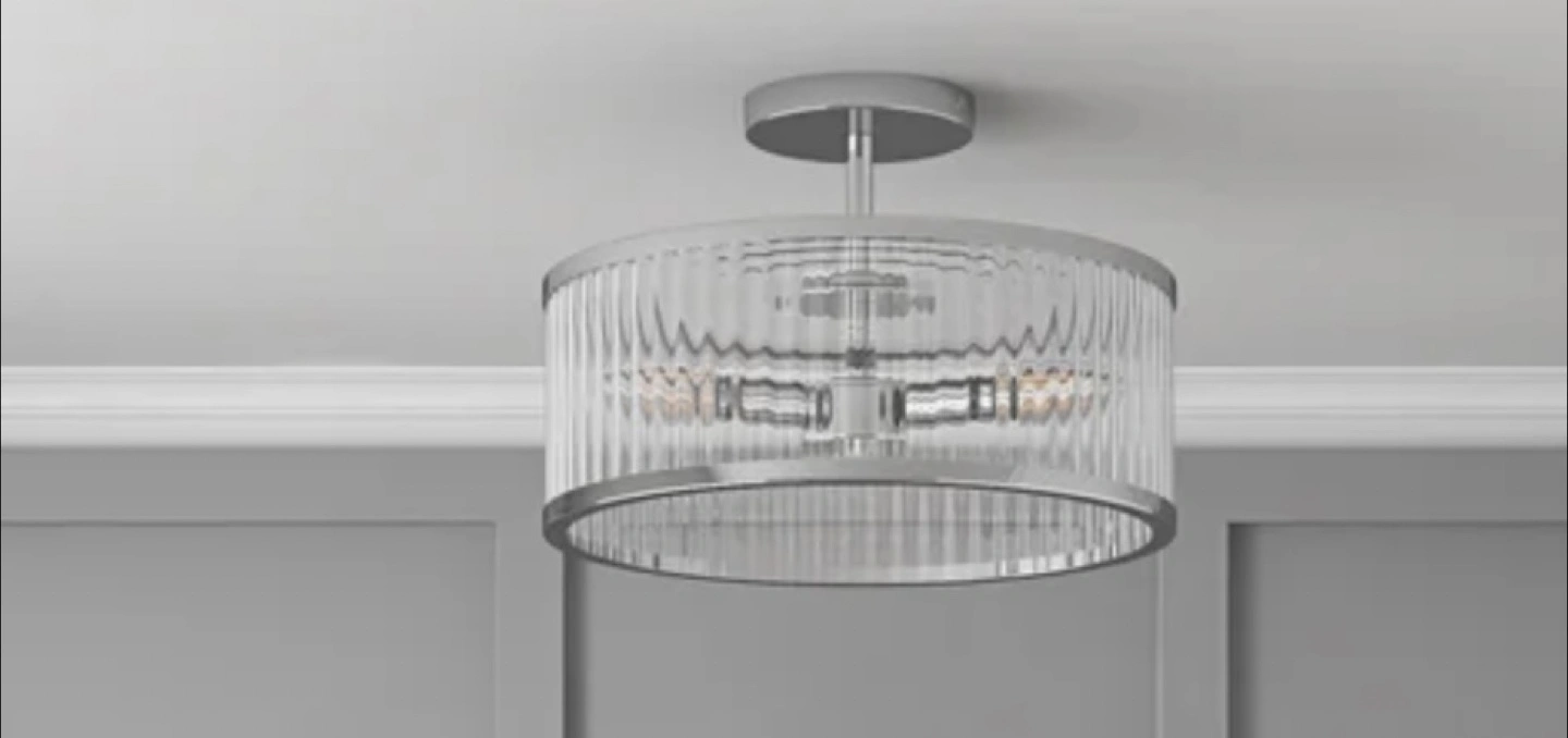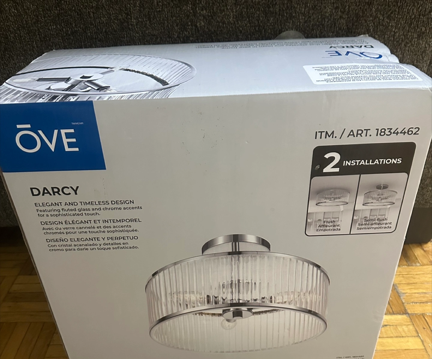Selling a brand new in box ÖVE Darcy flush/semi-flush mount light fixture. It features an elegant and timeless design with fluted glass and chrome accents for a sophisticated touch. It can be installed as either a flush or semi-flush mount.