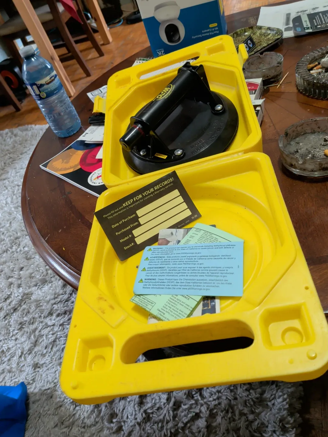 This is a Wood's Powr-Grip suction cup lifter. It has a load capacity of 125 lbs. .Smooth surfaces only.glass.non porous materials.Brand new.never used.