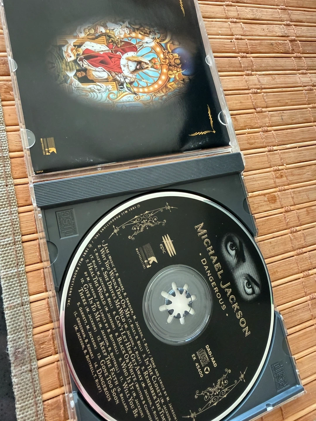 Michael Jackson's 'Dangerous' album on CD. Features popular tracks like 'Black or White' and 'Remember the Time'. Includes original booklet with lyrics. Released in 1991.