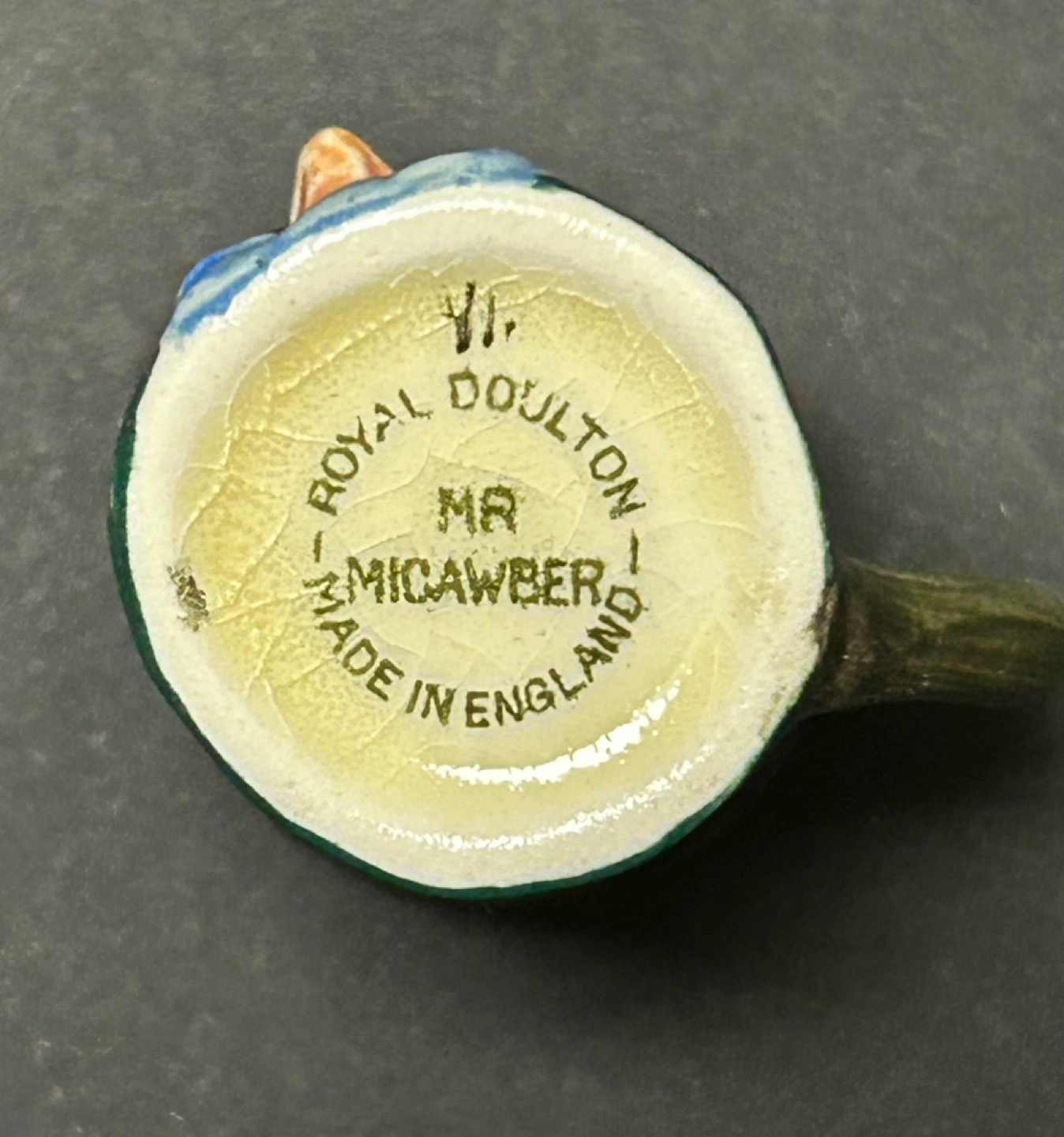 Buy & SellRoyal Doulton Mr Micawber Character JugRoyal Doulton Mr Micawber Character Jug$10Vintage Royal Doulton character jug. Mr Micawber figurine. Made in England. Small size.WHERE TO MEETNDSS AreaView MapSELLERverifiedGeraldHarewood1967 reviews0 chats·1 favorites·20 viewsSEND CHAT TO SELLERHi Gerald! I’m interested in your listing.Hi Gerald! I’m interested in your listing.Get the Karrot app to chatSign In to chat