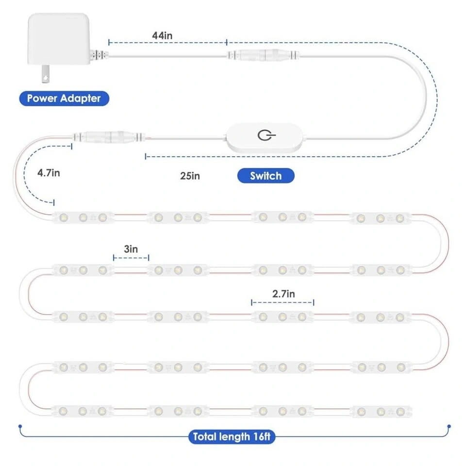 16FT LED Light Strip, 5000K Bright White Makeup Light, Stepless Dimmable Touch Control Vanity Lights for Mirror, Bathroom, Salon, Dressing Room, Living Room, Bedroom, etc. Brand new in box.
