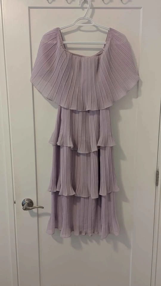 Lulu's lavender, off the shoulder ruffle dress. OG price $150, worn only twice and has been dry cleaned. It is a size Small but is a super stretchy material and I think it would also pass for a Medium!
