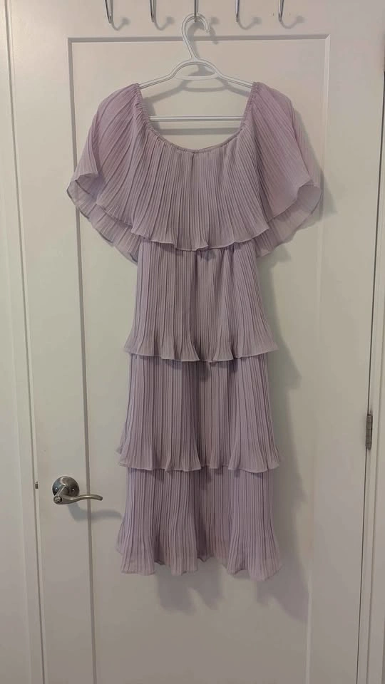 Lulu's lavender, off the shoulder ruffle dress. OG price $150, worn only twice and has been dry cleaned. It is a size Small but is a super stretchy material and I think it would also pass for a Medium!