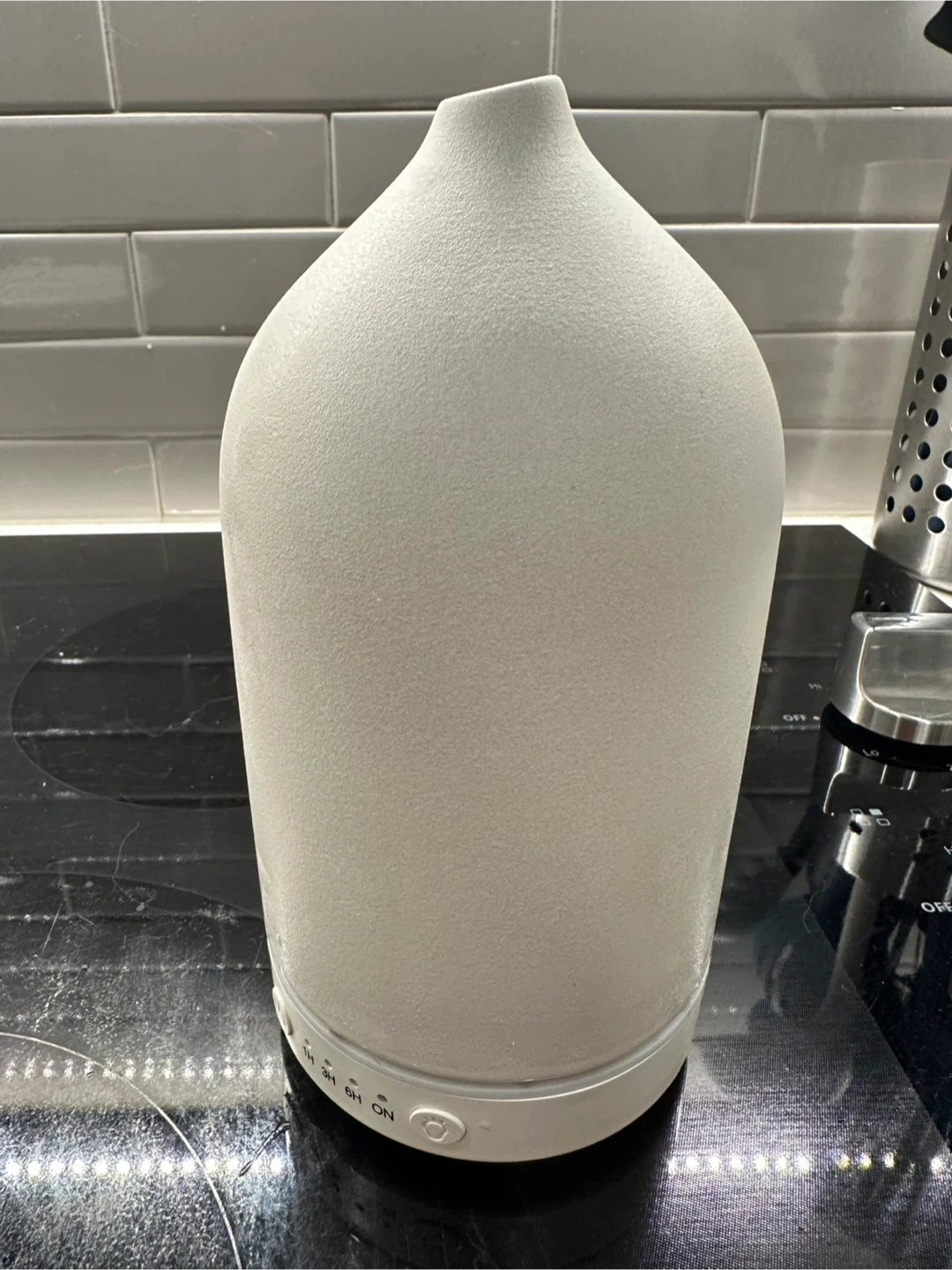 This is a 200ML ceramic aromatherapy diffuser. It has 7 colour lights and auto shut-off. The working time can be set to 1H, 3H, or 6H.