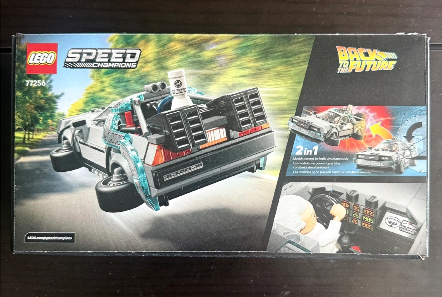 Build the iconic Time Machine from Back to the Future! This LEGO Speed Champions set includes 357 pieces. It's a 2-in-1 model, allowing you to build either the original or the hover version. Great for fans of the movie and building toys!
