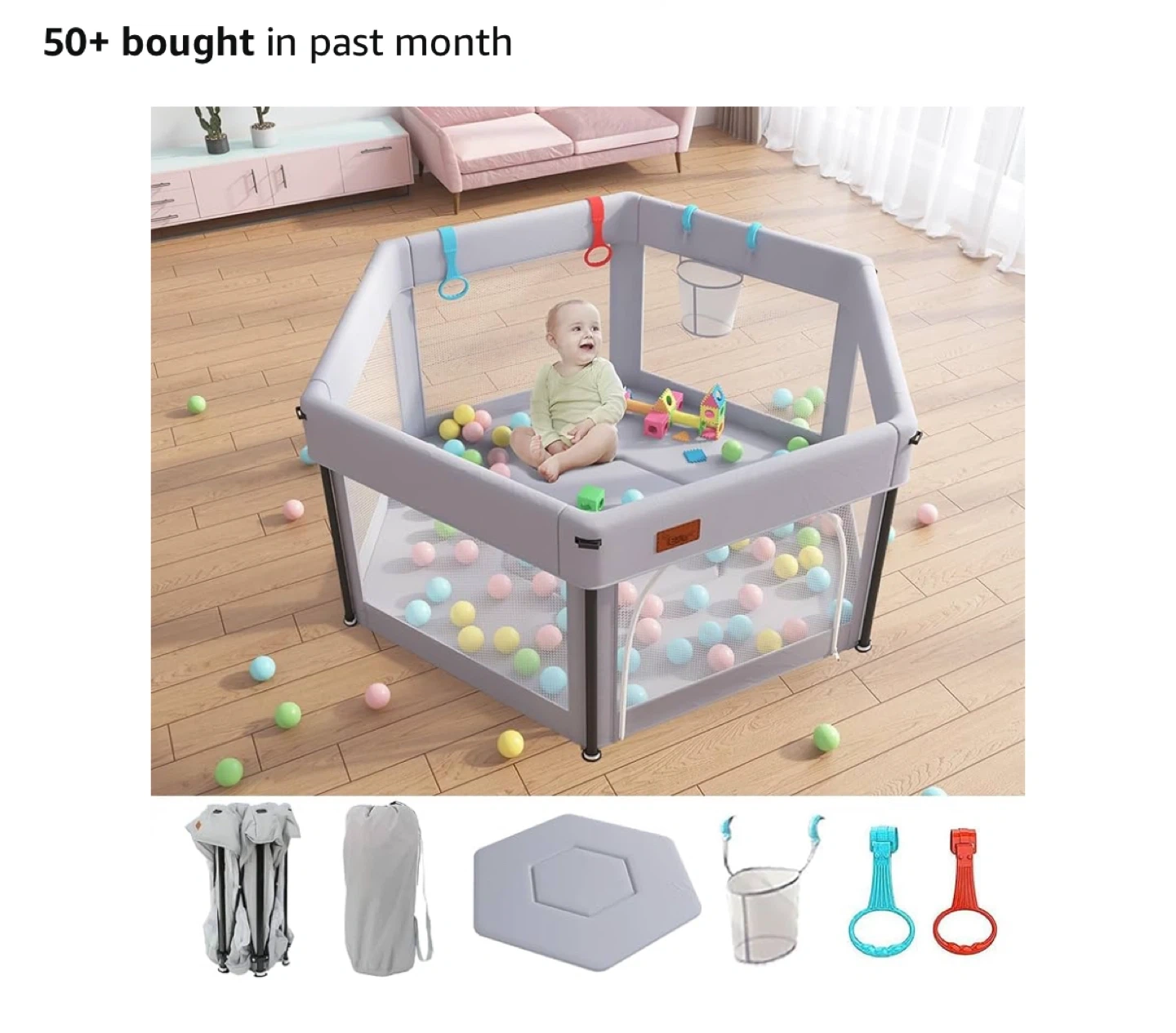This foldable baby playpen is perfect for keeping your little one safe and entertained! It features a one-step folding design for easy set-up and take-down, and it's super-compact for saving space. It also comes with: