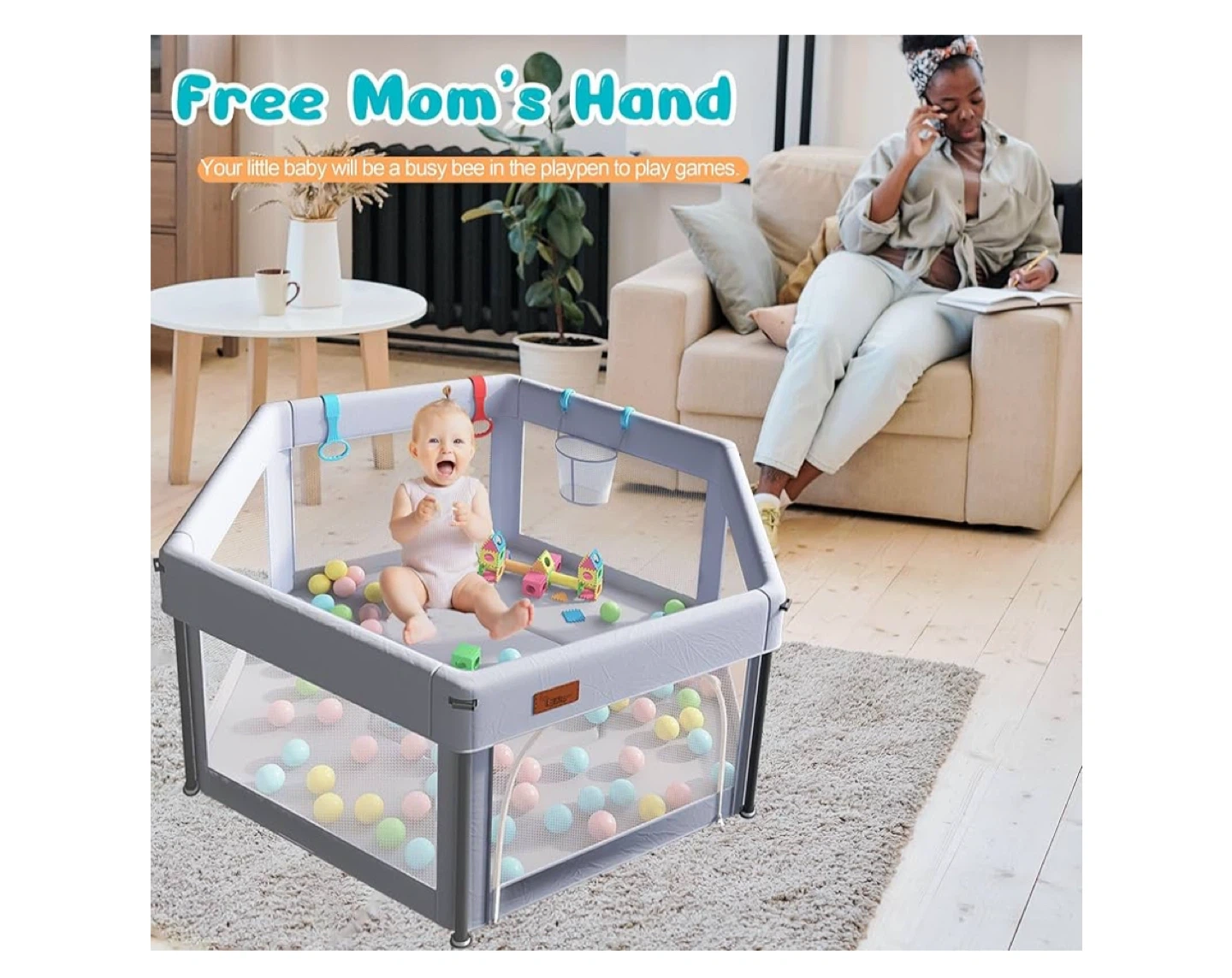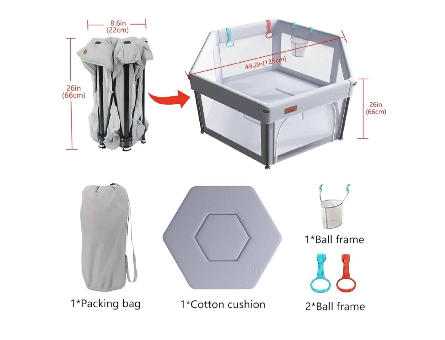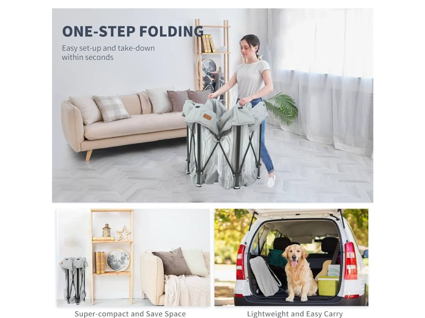 This foldable baby playpen is perfect for keeping your little one safe and entertained! It features a one-step folding design for easy set-up and take-down, and it's super-compact for saving space. It also comes with: