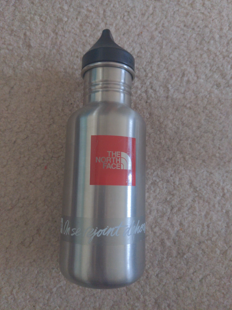 Reusable water bottle. Stainless steel. 18/8 stainless steel. 592 ml. Features The North Face logo.