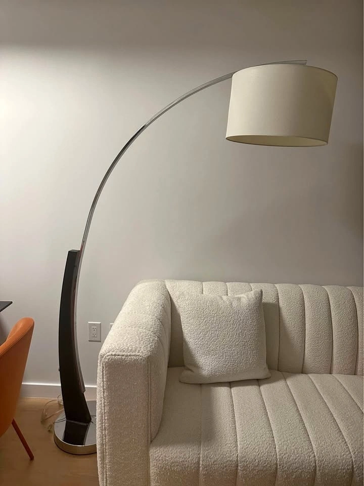 Add a warm, contemporary touch to your living room or reading nook with this elegant arc floor lamp. Modern / Mid-century inspired arc floor lamp. Gently used, excellent working order.