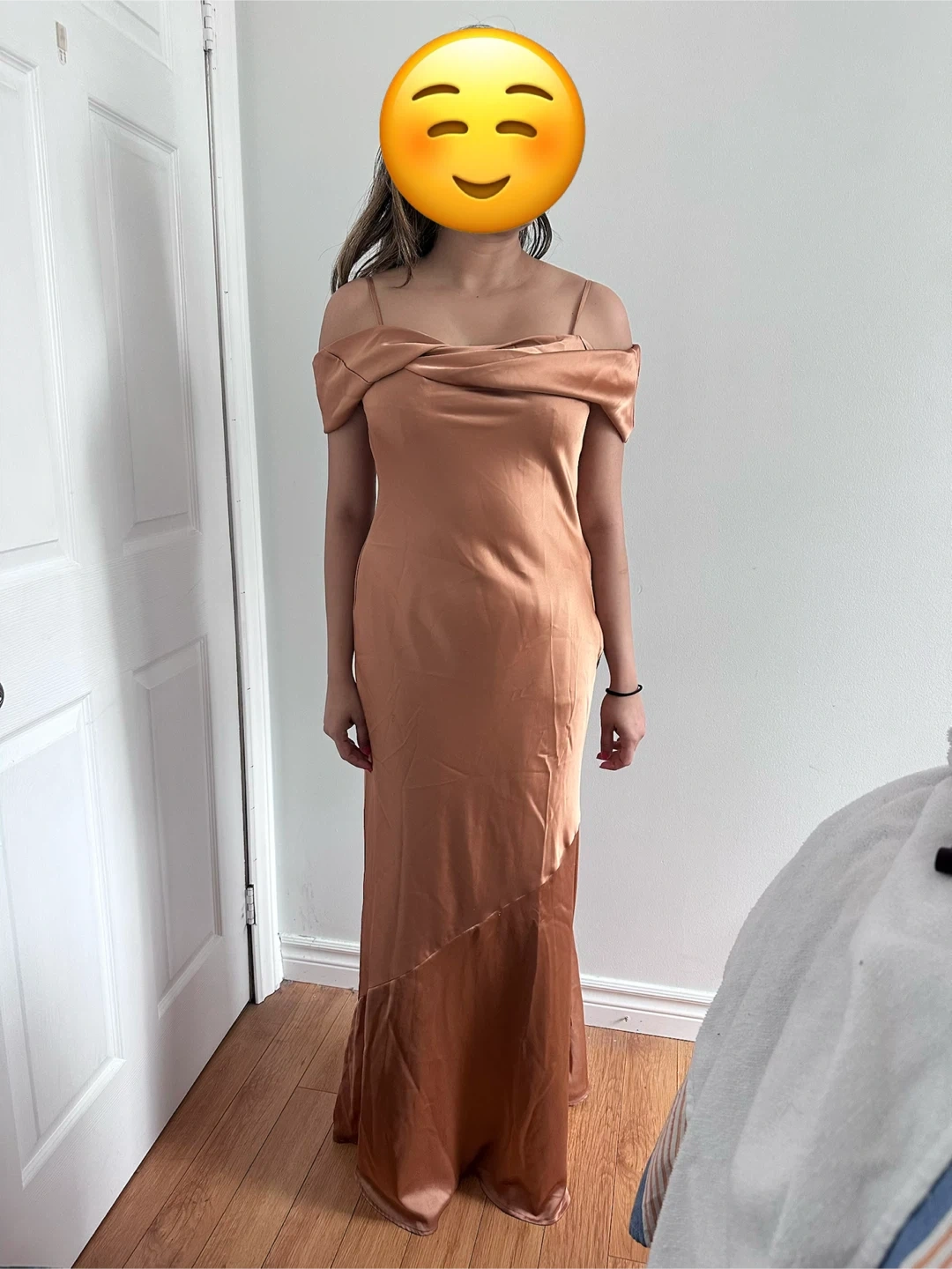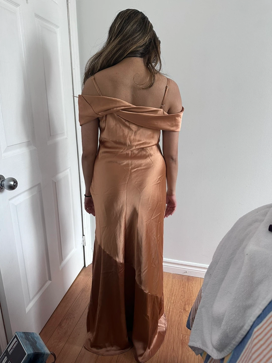Satin Off-Shoulder Maxi Dress