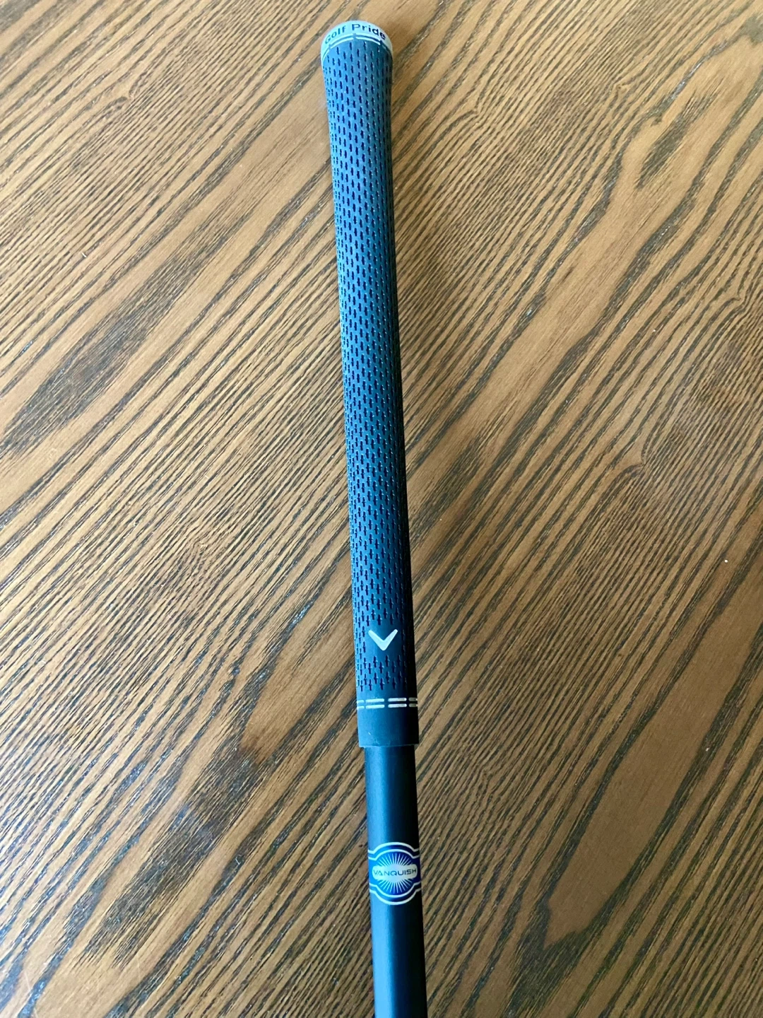 Equipped with a Mitsubishi Vanquish 5R (regular flex) shaft, standard length, and a Golf Pride Callaway universal grip