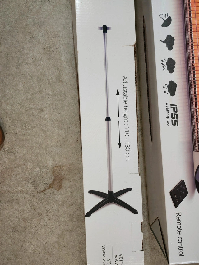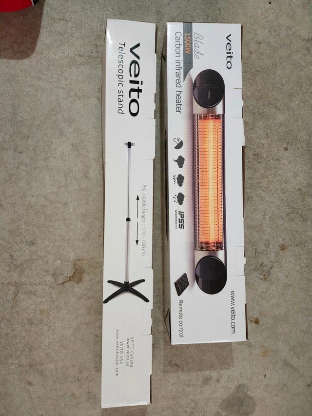 5Veito Infrared Heater- 1500 Watts - Blade Version $150 Veito Telescopic Stand - 110cm-180cm $75 Both for $200 Condition: Used - Like new For Sale By: Owner Curbside pick up: Yes Cash accepted: Yes Payment: Cashless payment, Cash accepted