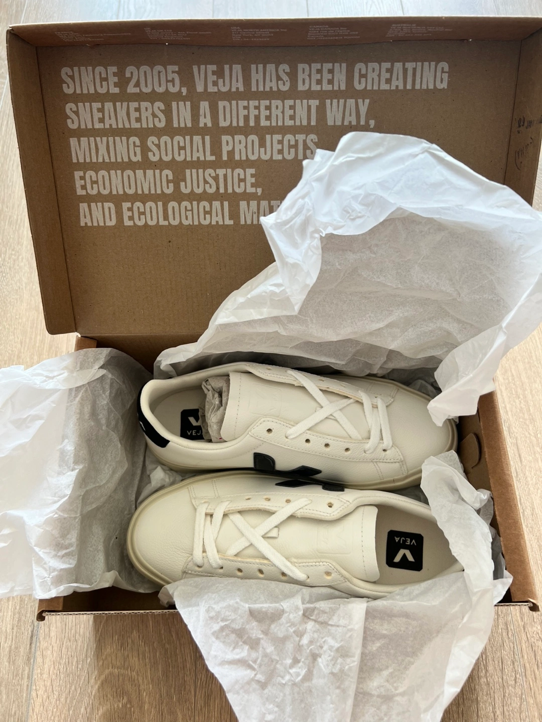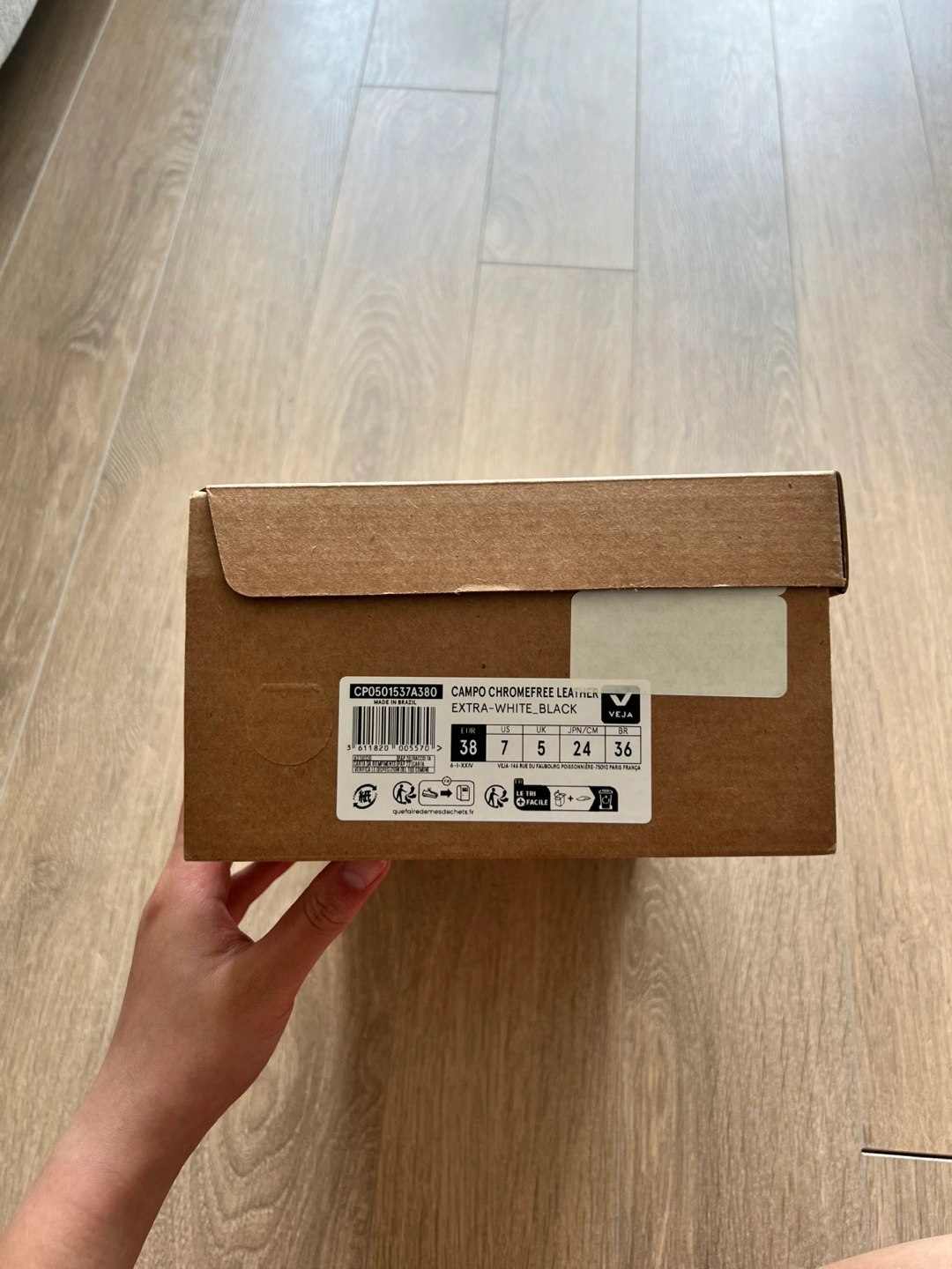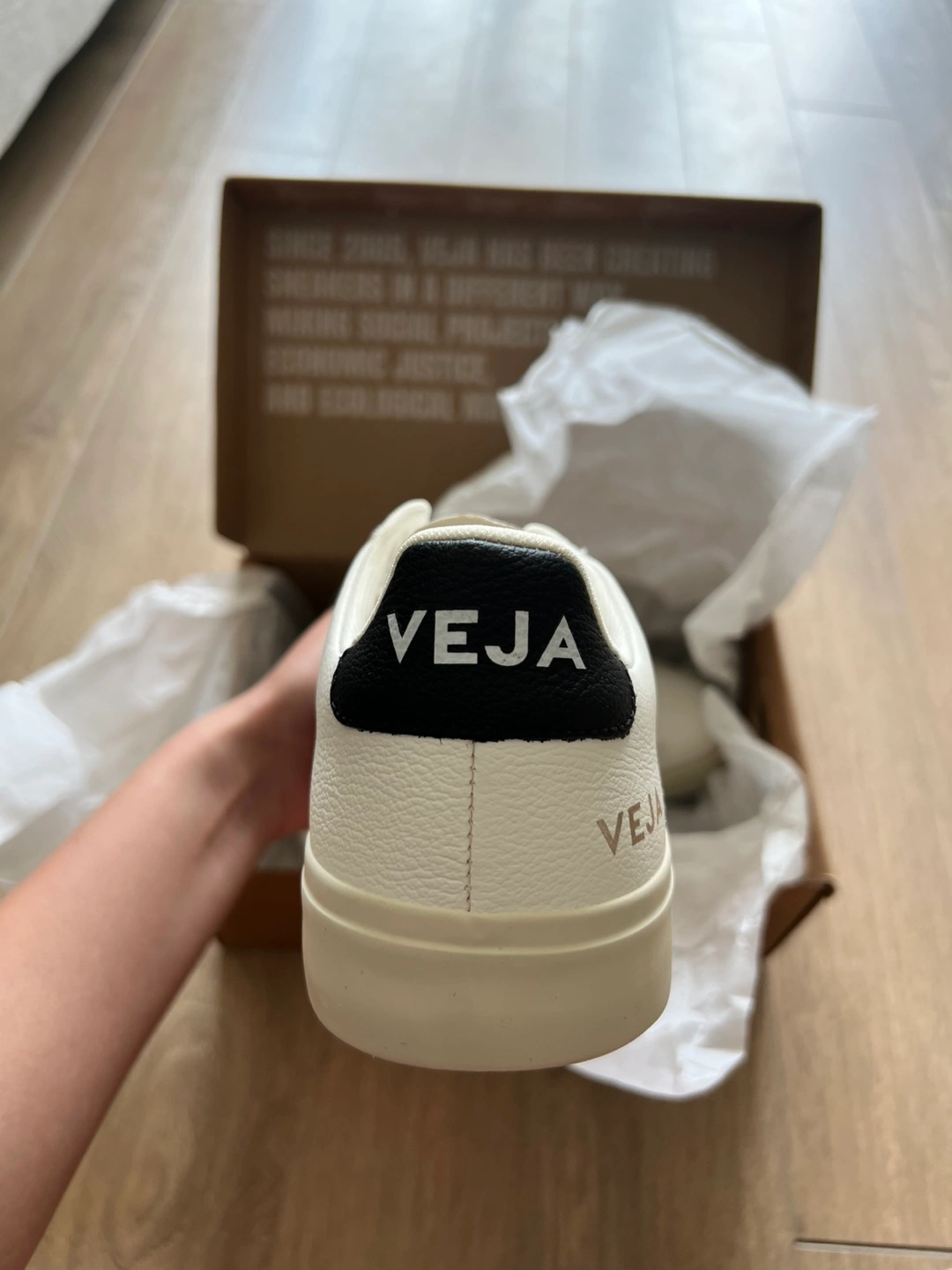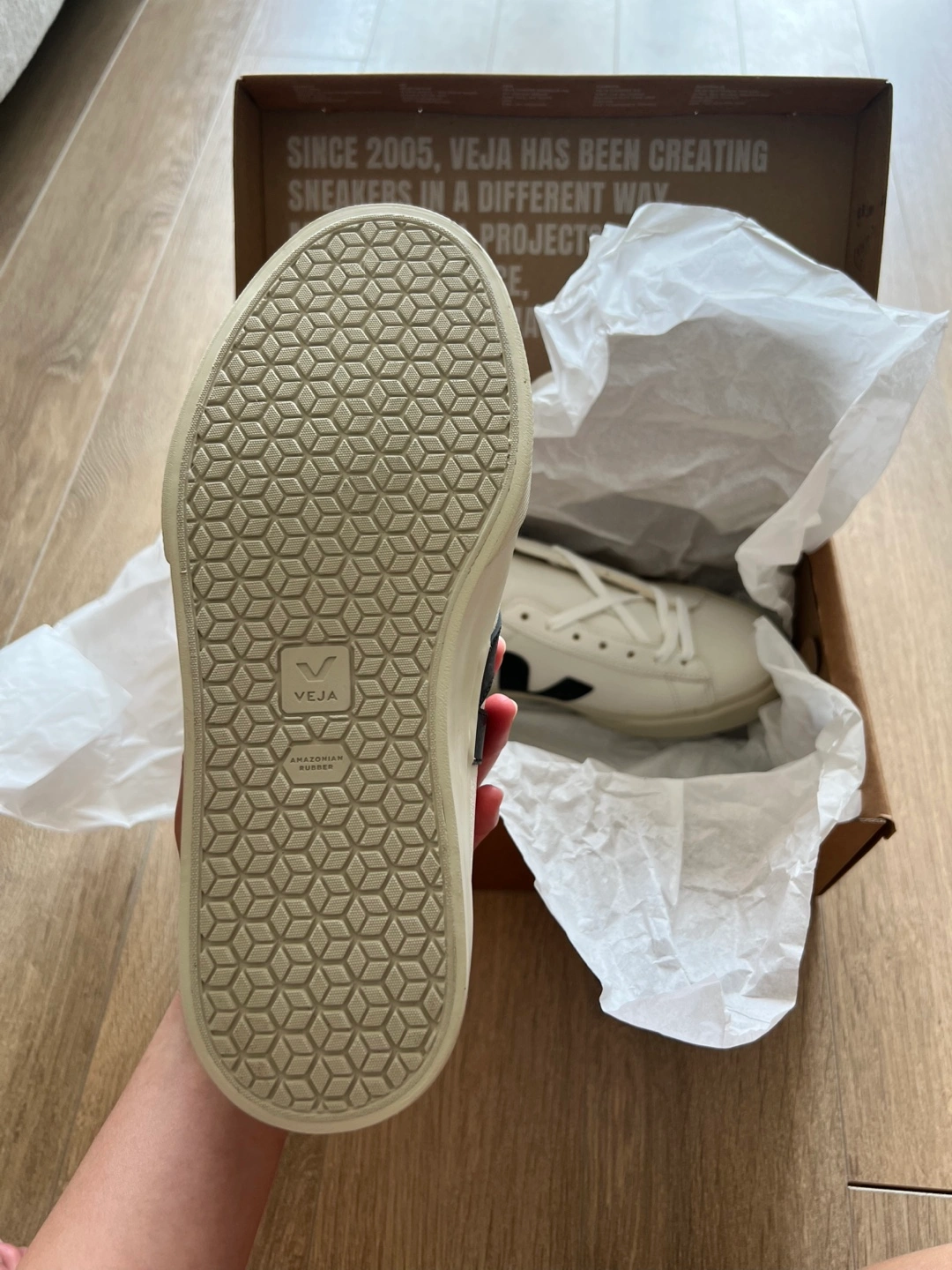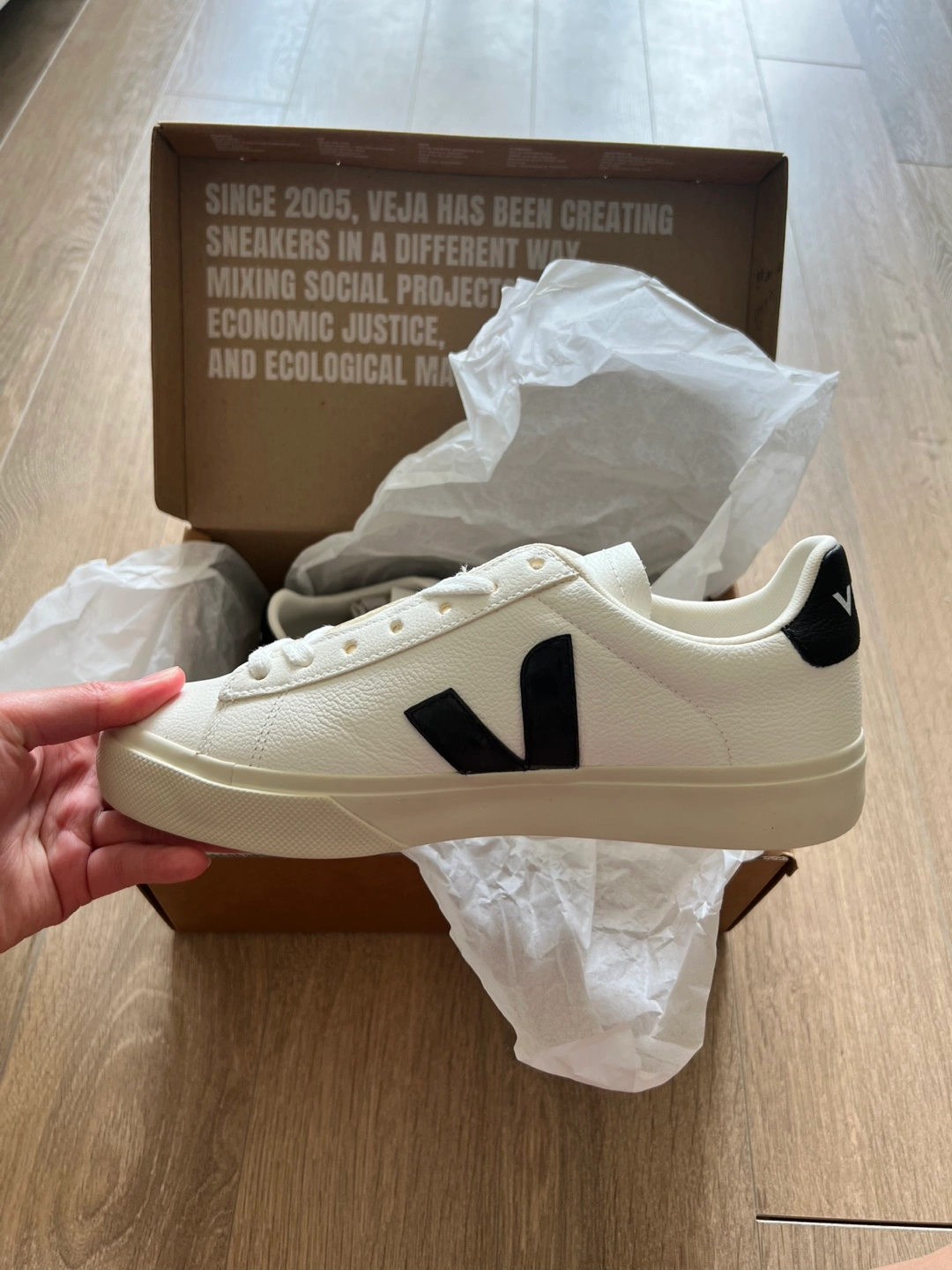 52Veja Campo sneakers in white leather with black detail. Size 38. Never worn. Purchased from Anthropologie (receipt available). Retails for $210 plus tax. Pickup in downtown Toronto near King TTC station