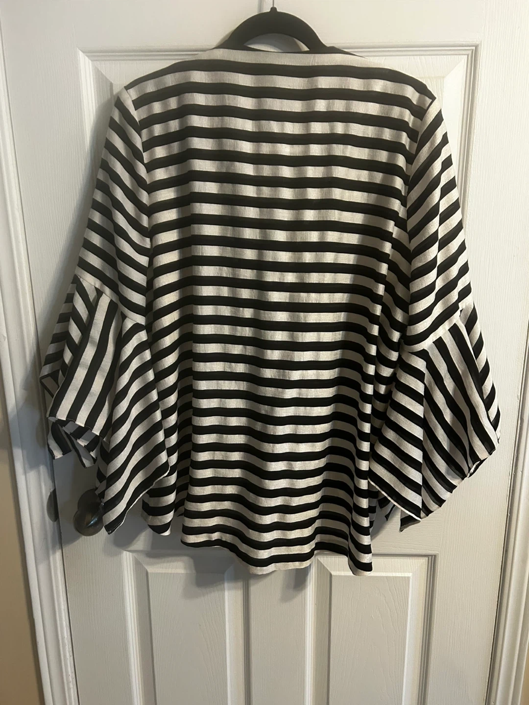 Joseph Ribkoff Black & White Striped Bell Sleeve Jacket Size 12