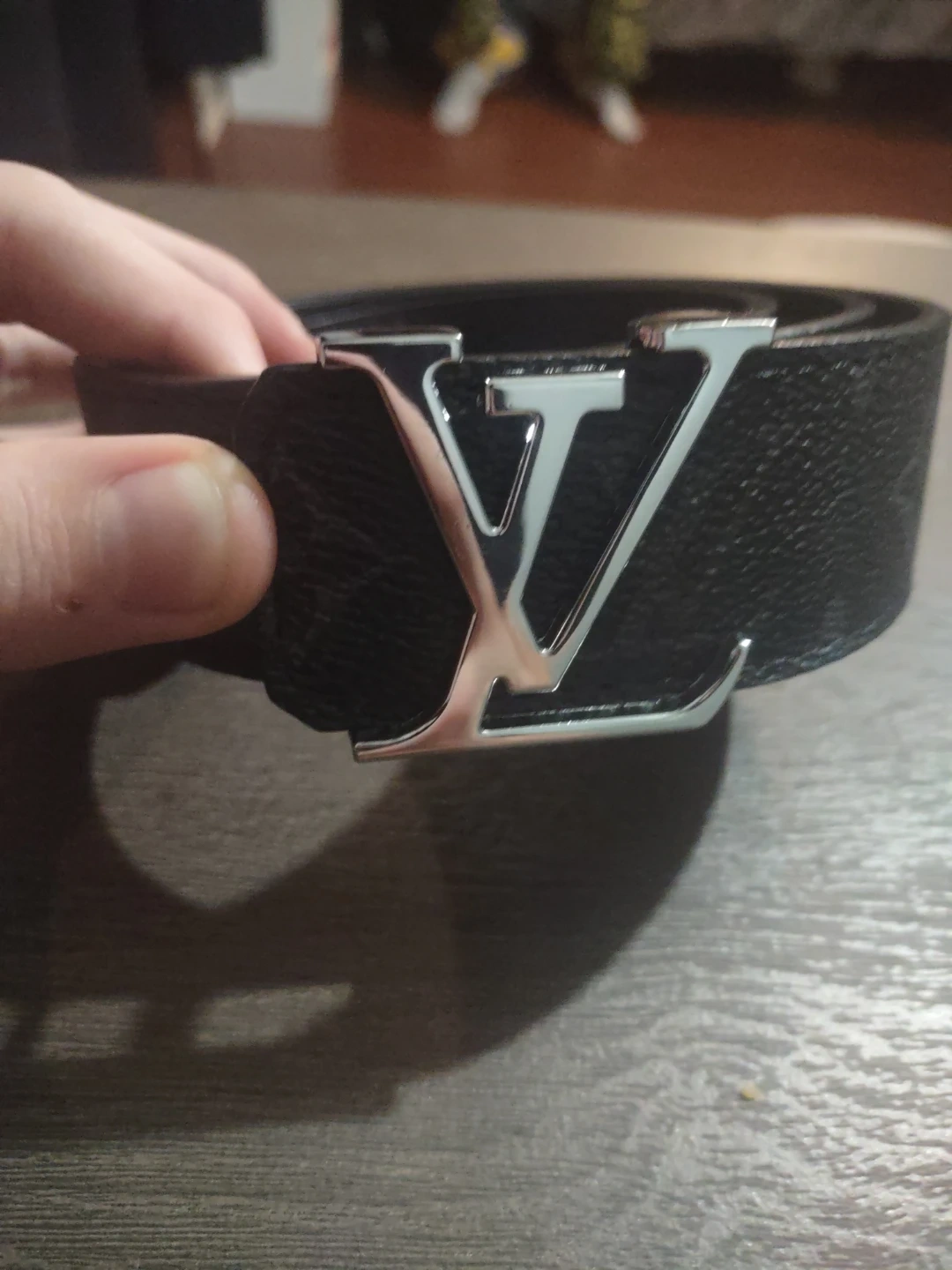 Classic Louis Vuitton belt in black with silver LV buckle. Made from textured leather. Includes original box, dust bag, and authenticity card. A timeless accessory for any outfit!