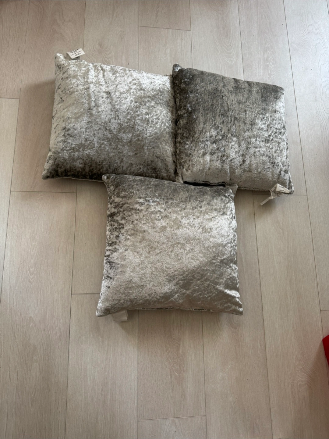 25Selling a set of three decorative pillows with a crushed velvet texture. They're in great condition and would add a touch of elegance to any living space!
