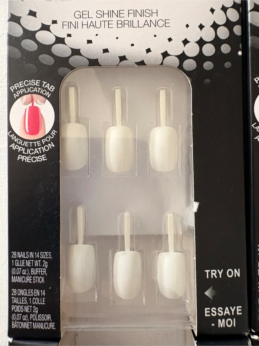 Get a gel shine finish with these Sensationail Gelovolution press-on nails. Each pack includes 28 nails in 14 sizes, 1 glue, buffer, and manicure stick. Available in a deep burgundy or a natural white shade. Perfect for a quick at-home manicure!