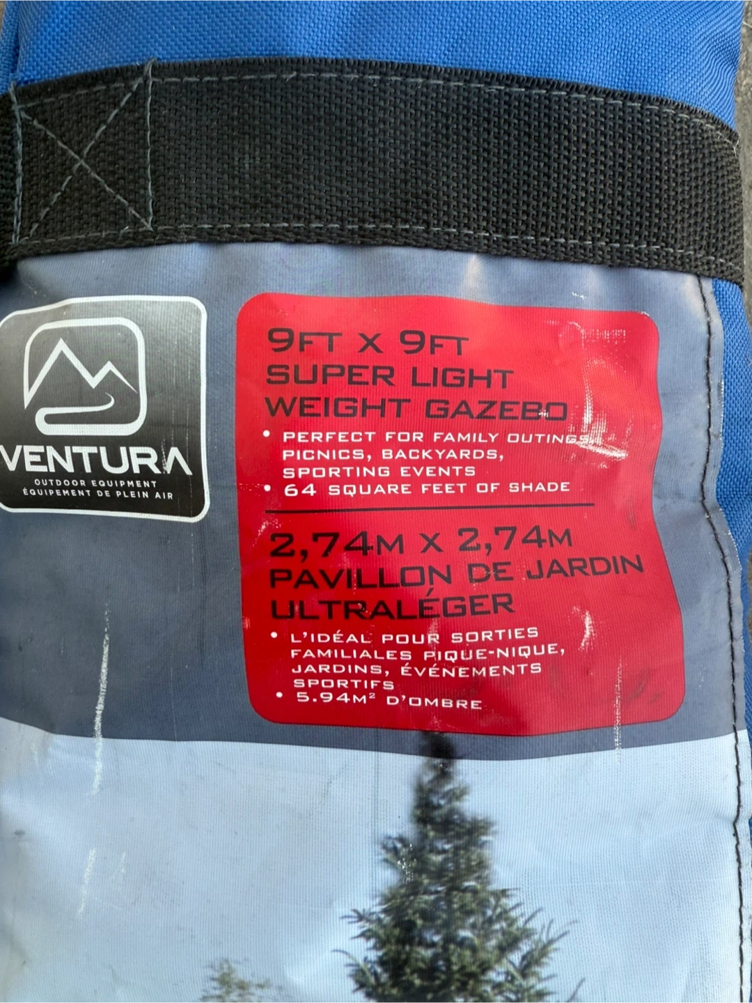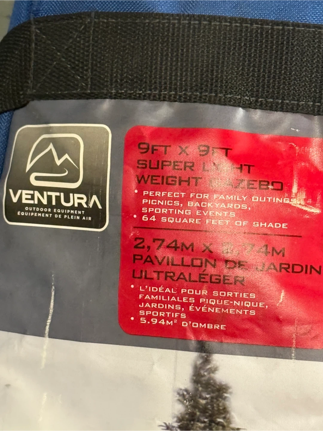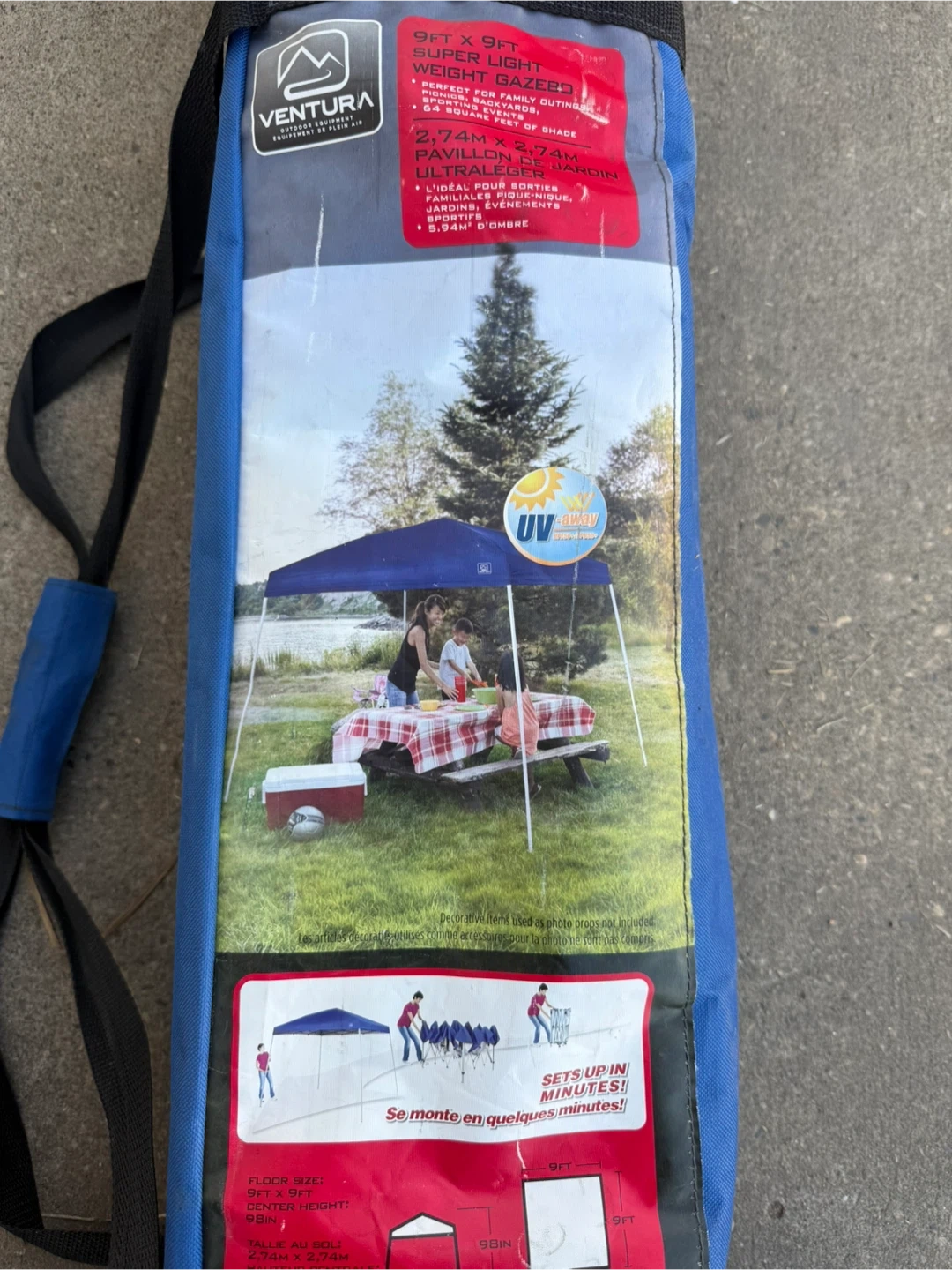 219Get ready for sunny days with this Ventura 9ft x 9ft lightweight gazebo! It's perfect for family outings, picnics, backyard fun, and sporting events, offering 64 square feet of shade. This gazebo sets up in minutes, making it a breeze to enjoy the outdoors. This particular gazebo is used, but still in good condition for all your outdoor adventures. * 9ft x 9ft floor size * Super light weight * Sets up in minutes Looking for a shady spot? This gazebo is your answer! But don't wait too long; if the ad's up, it's still available!
