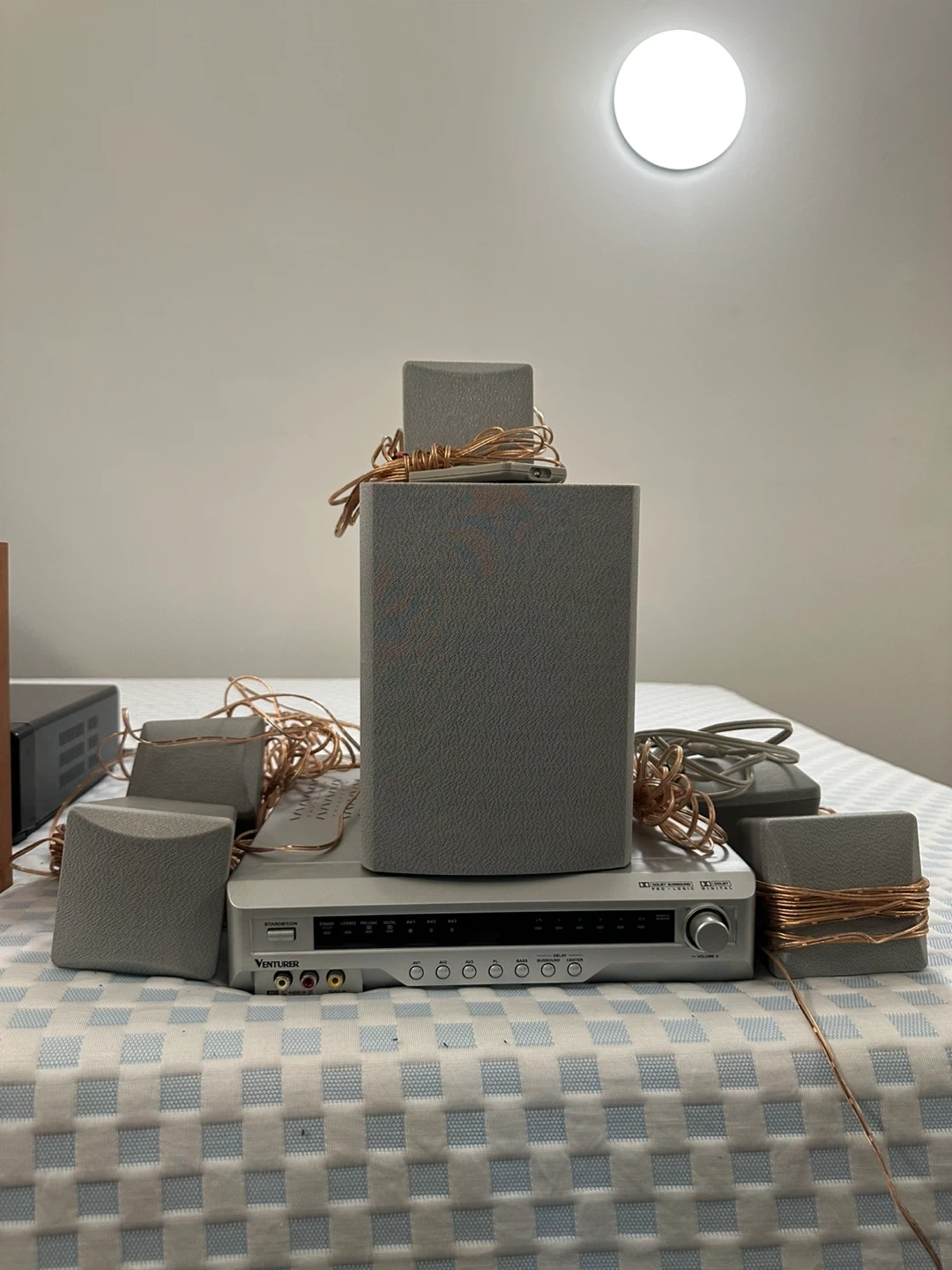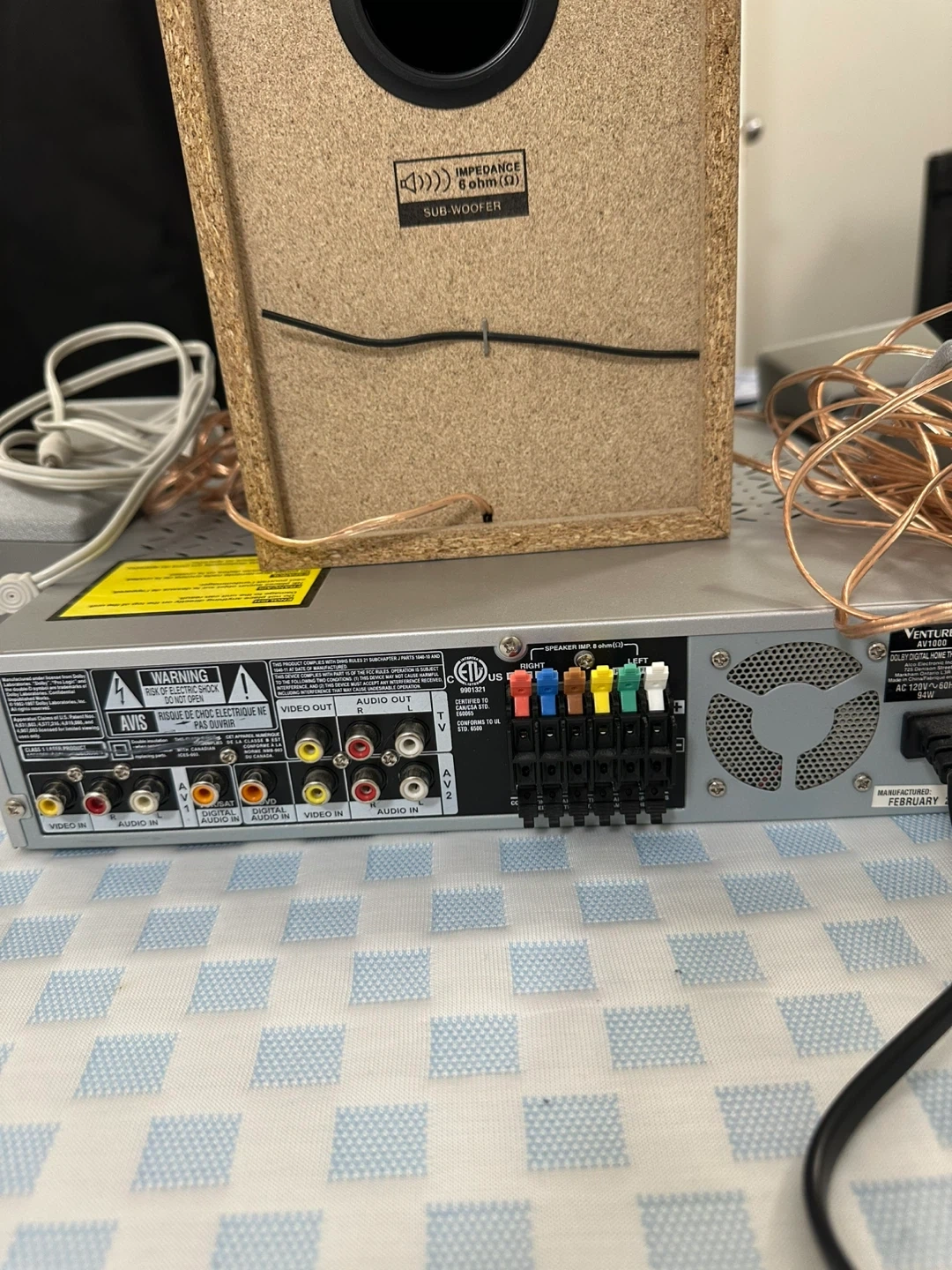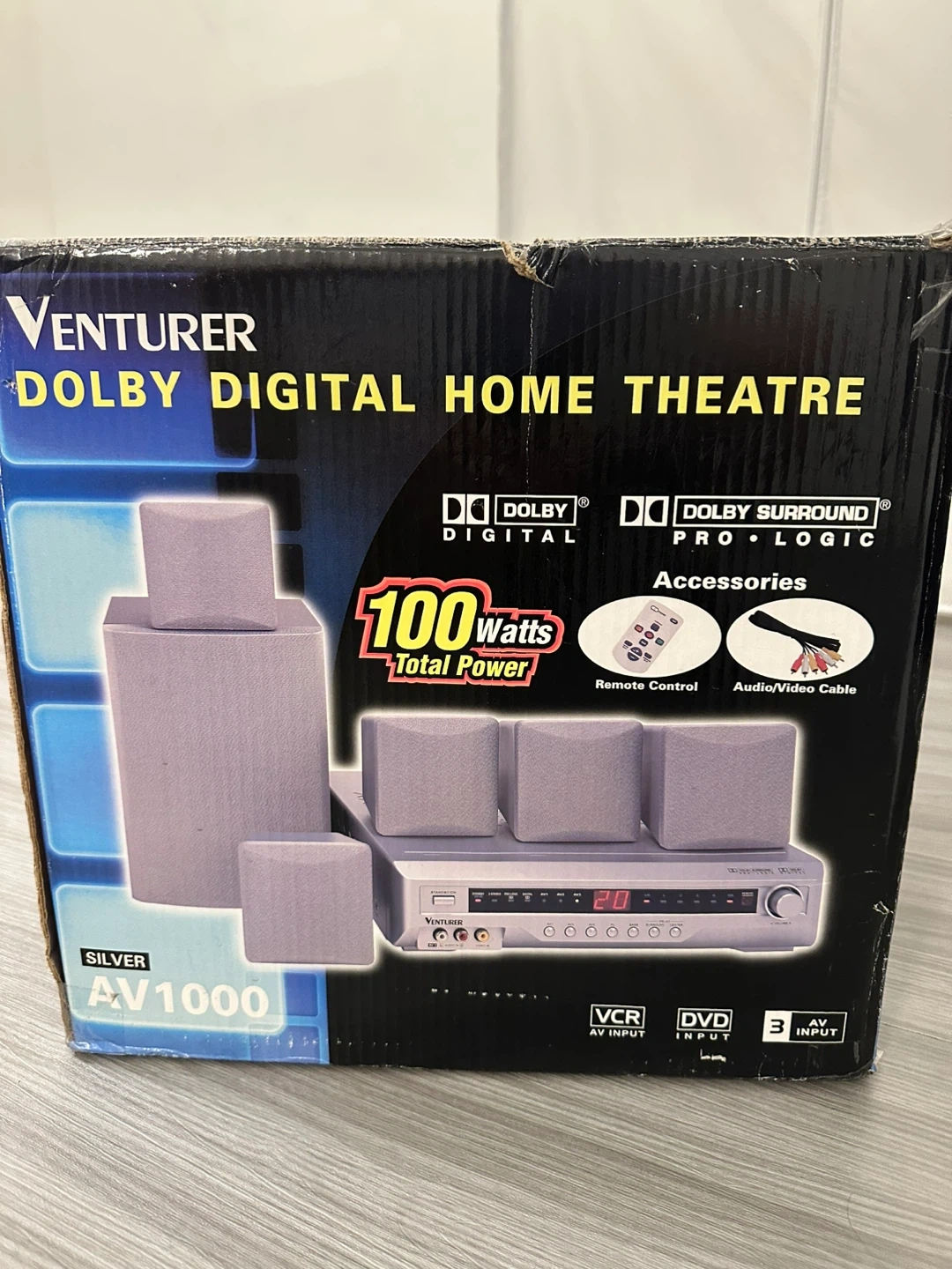 Selling a Venturer Dolby Digital Home Theatre System, model AV1000. It comes with the remote control and audio/video cable. The system is 100 Watts Total Power. The box is included! Plus a pair of Sony bookshelf speaker.