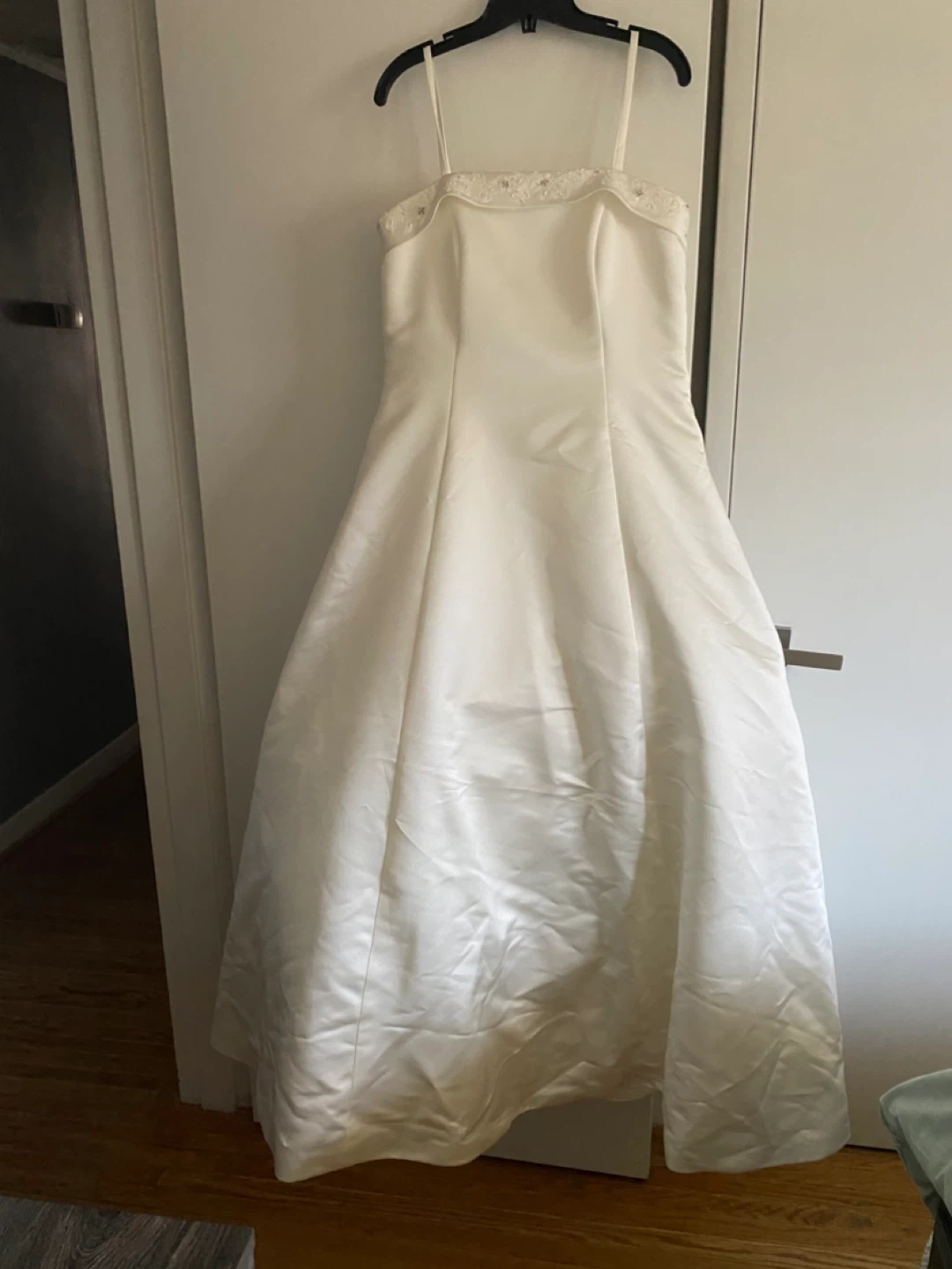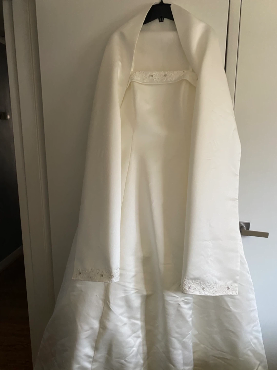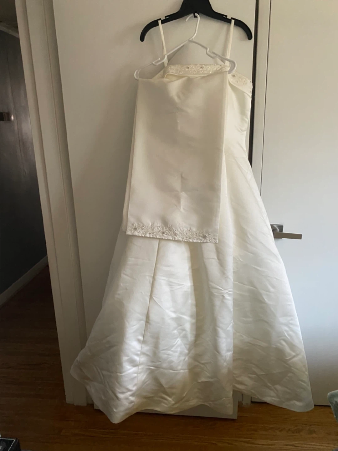 Selling a beautiful Venus wedding dress. It's a size 16 and made of 100% polyester. The style number is 1113-62. It's been professionally dry cleaned and is ready for its next big day!