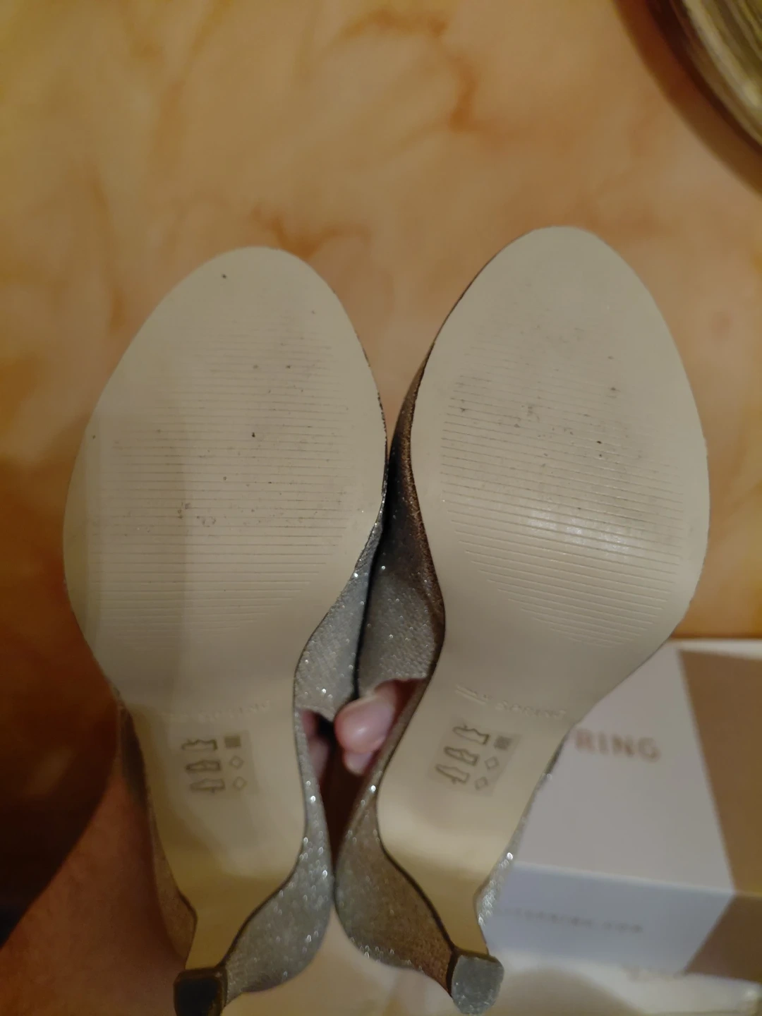 Note: Small indent / scratch on the inner sole of right foot