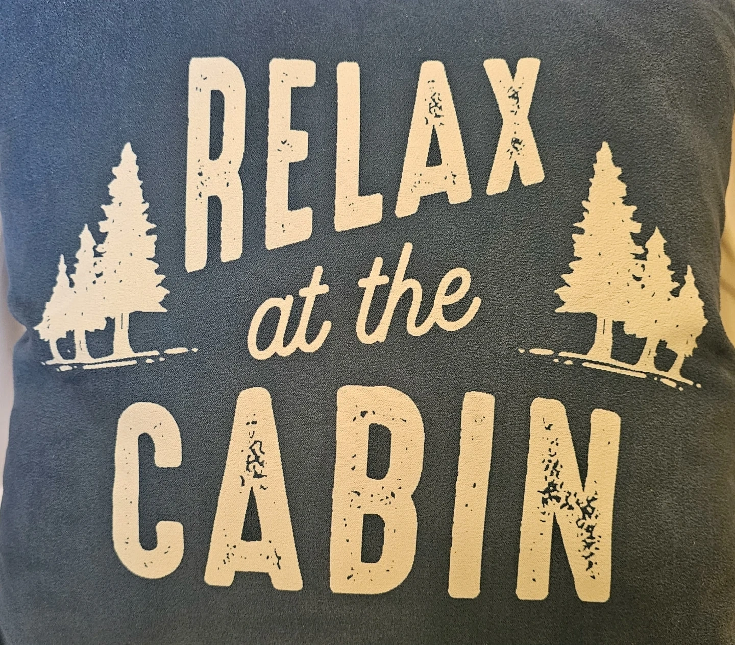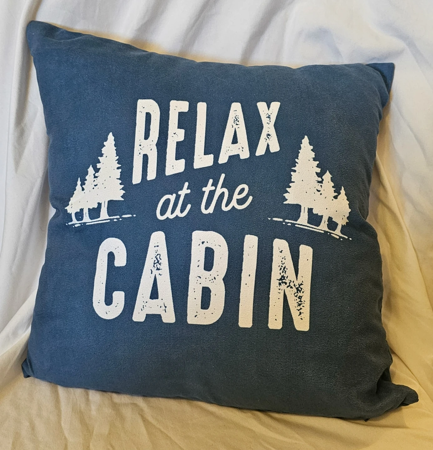 This Blue and White "Relax at the Cabin" Decorative Pillow is Brand New and never worn. No tags attached.