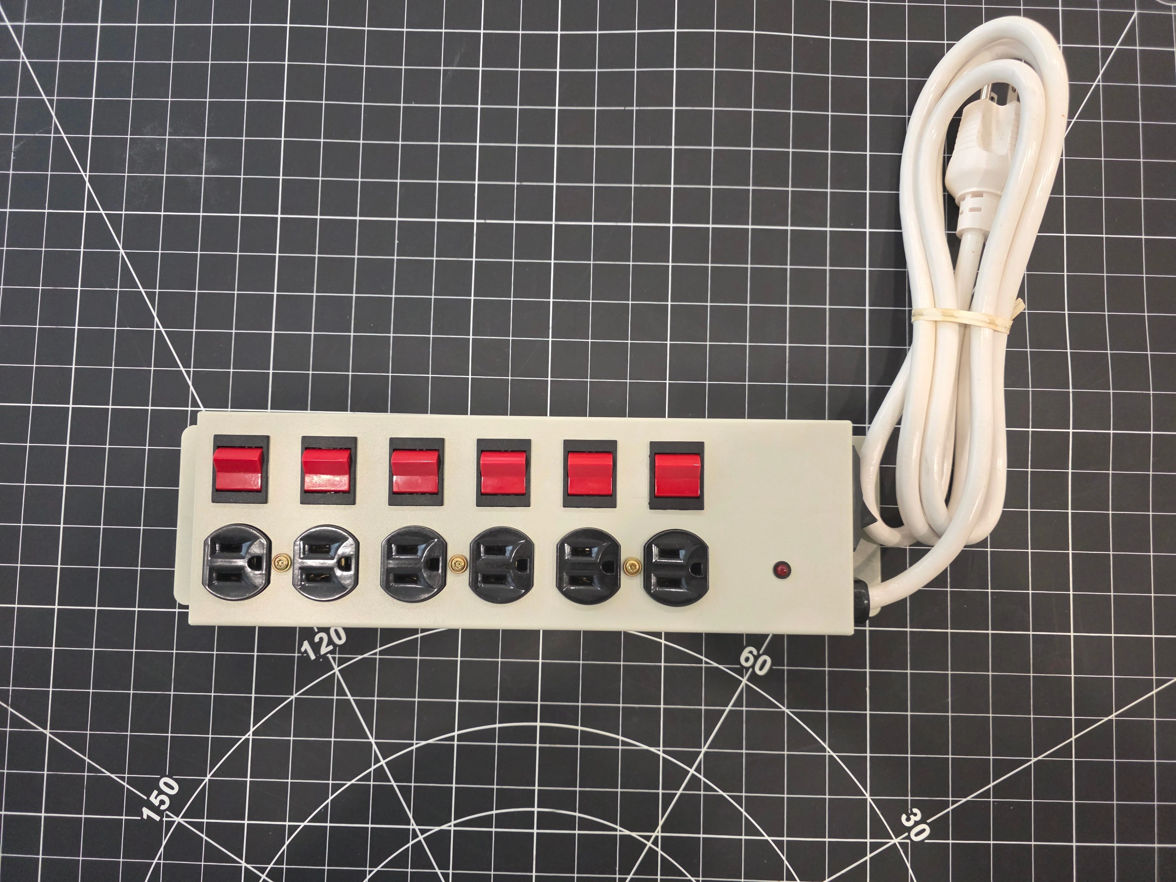 Intermatic IGG157PS 6‑outlet power strip. Rated for 15A / 125V, making it sturdier than standard consumer power bars. Ideal for workshops, home offices, electronics benches, or anywhere you need reliable, grounded power distribution.