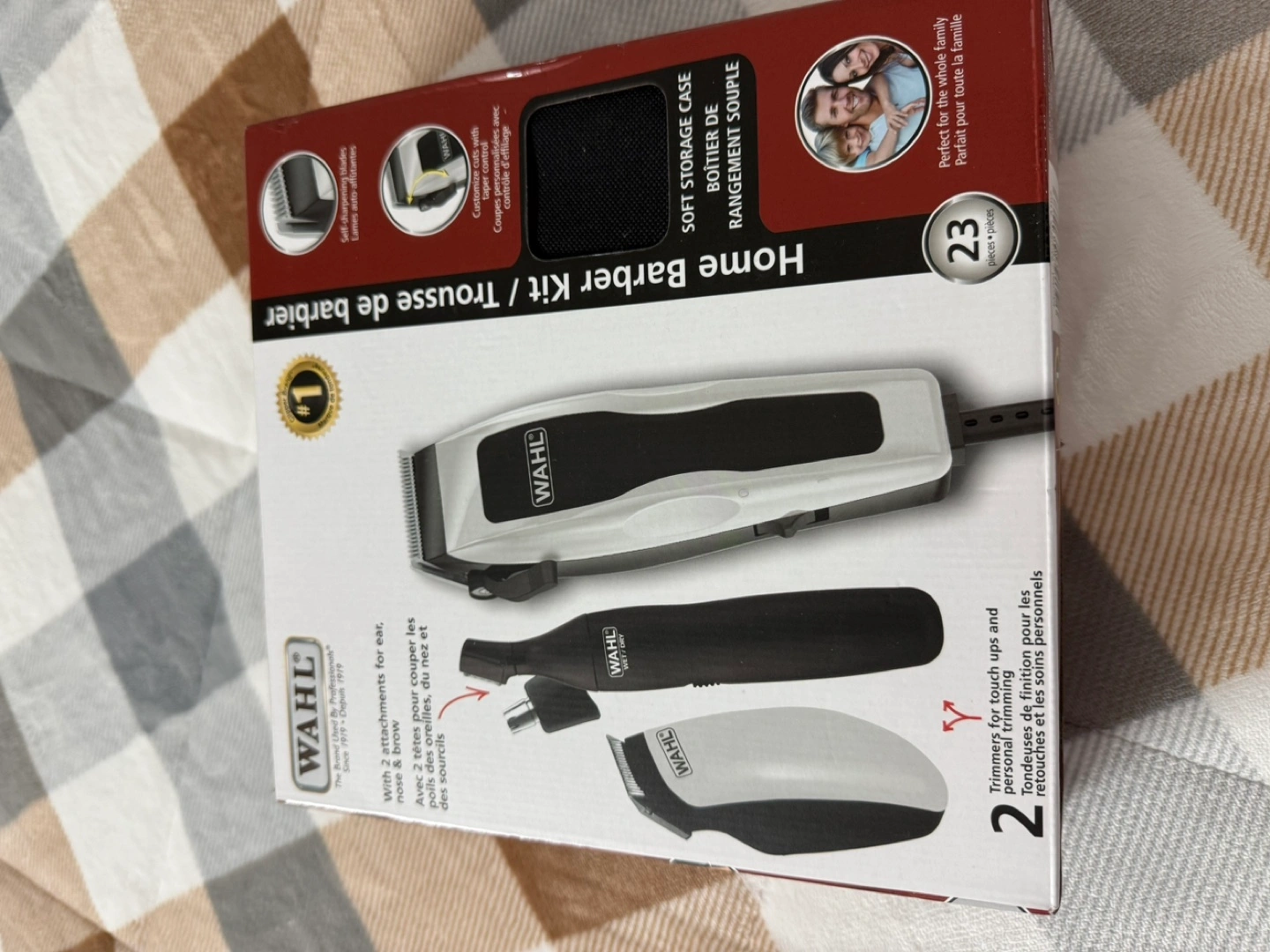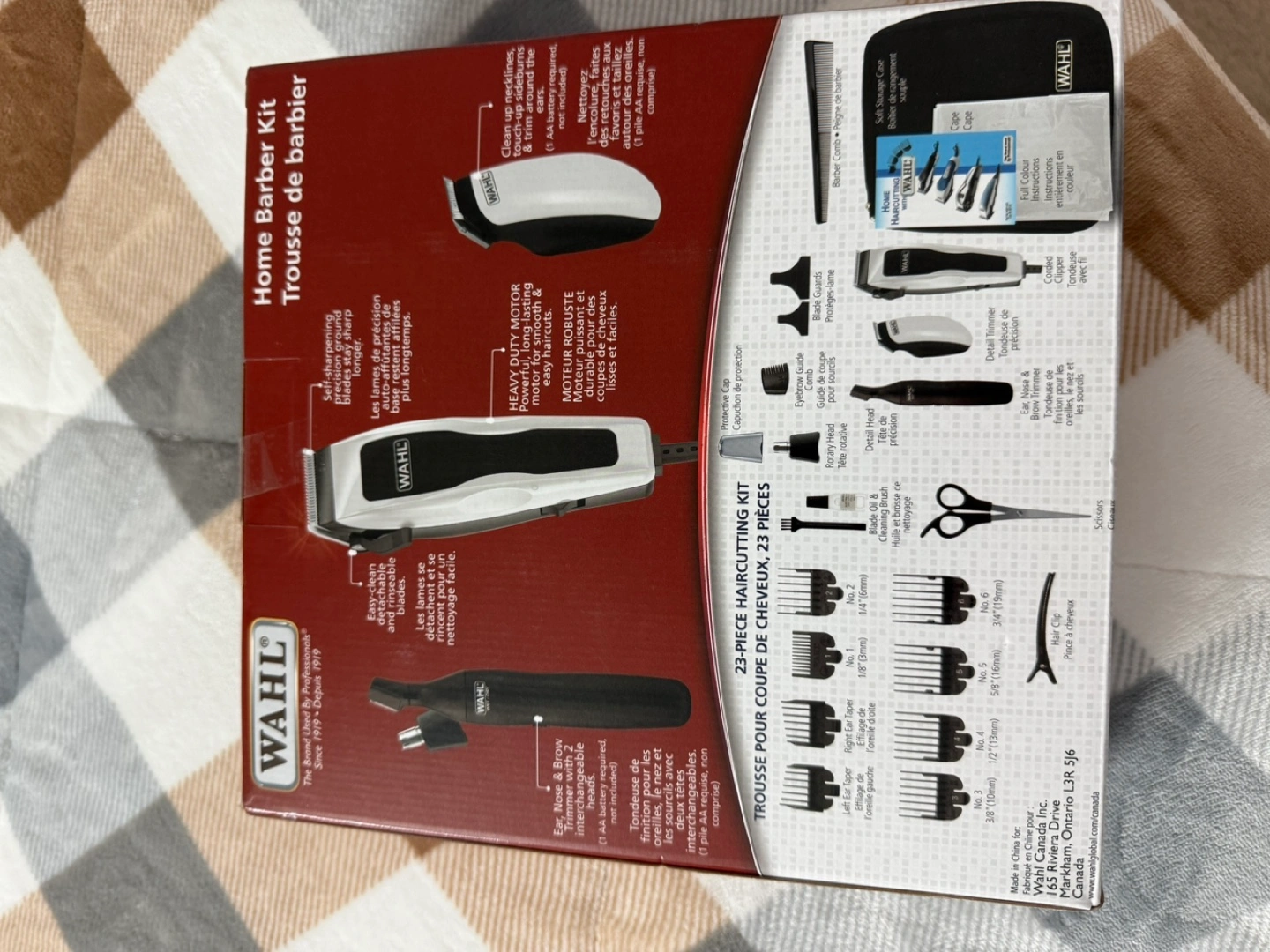 Get the perfect haircut at home with this Wahl Home Barber Kit! This 23-piece set has everything you need for a professional-looking trim. It includes a multi-cut clipper, detail trimmer, and ear, nose & brow trimmer. Perfect for the whole family!
