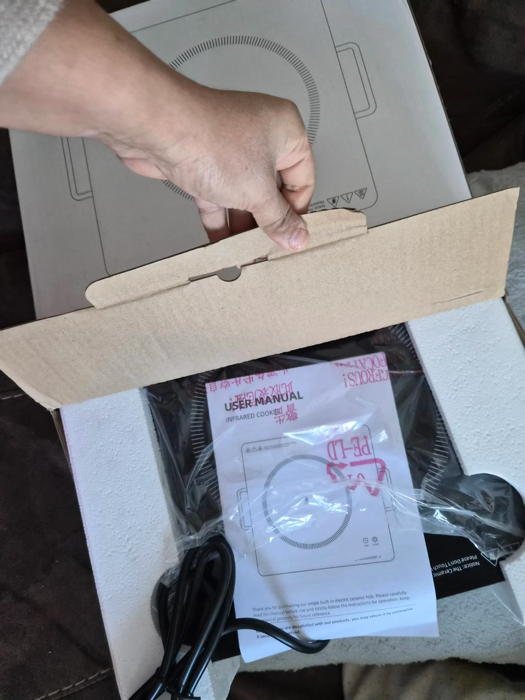 Never used - bought for cottage trip, but plan aborted. This is a new induction hot plate with a single burner. It has controls for timer and power..
