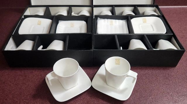 15Verdici Design Espresso Set - 6 Cups & Saucers in a Boxed Set - 2 Box Sets *New in Boxes* - White China - Dishwasher & Microwave safe Asking $40.00 Per Box